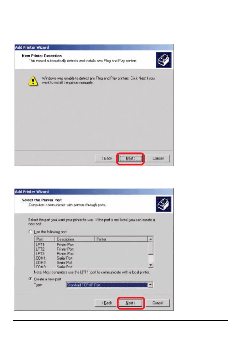 Select the second option, Create a new port, and highlight Standard TCP/IP Port