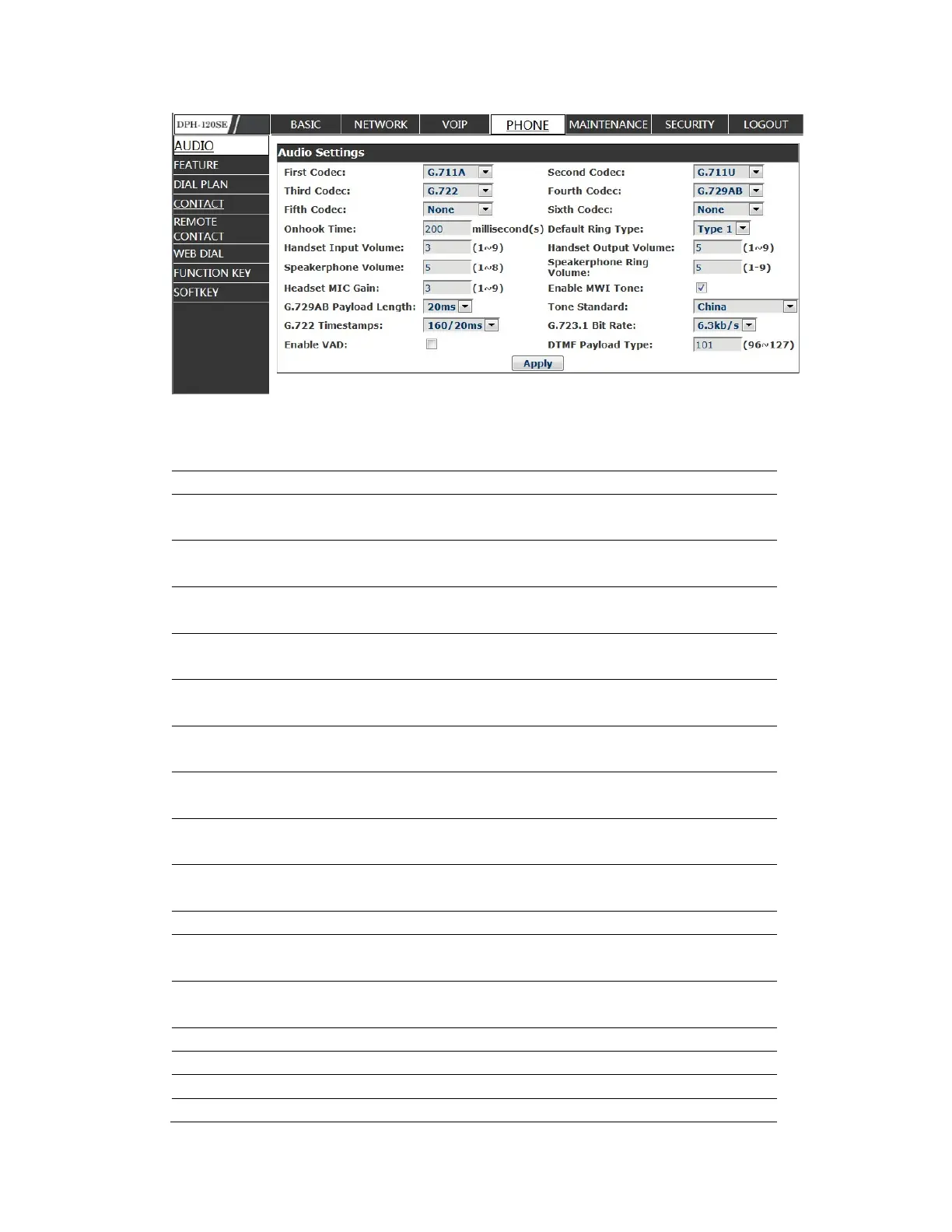 Fourth Codec The forth preferential DSP codec: G.711A/u, G.722,