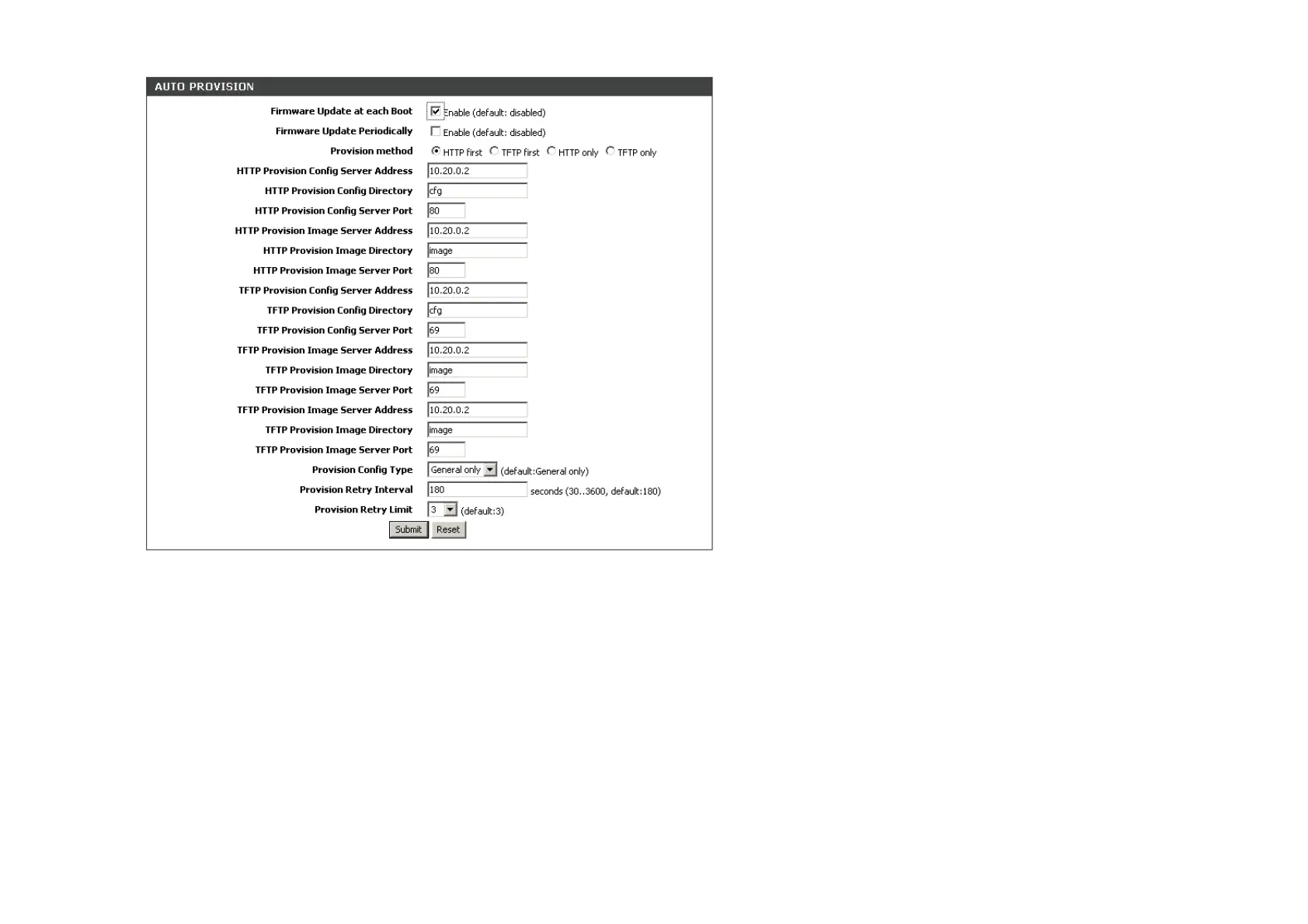 HTTP Provision Config Server Address: IP address of http provision server which stores configuration file