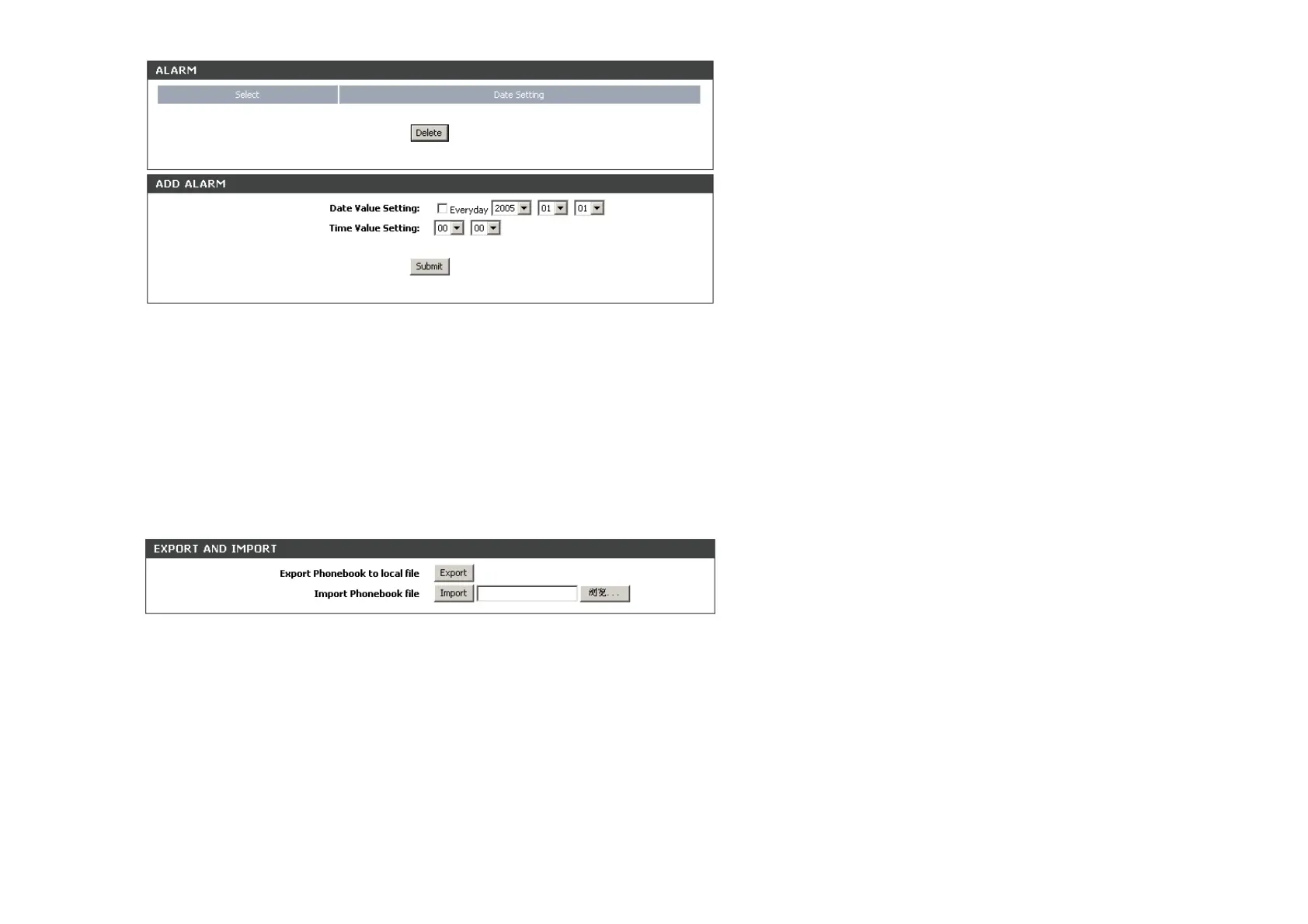 The size of import file can’t smaller than 8KB; there must be “[phone_book]” tag at the file’s head, and there must be a phone book item at least in the file.