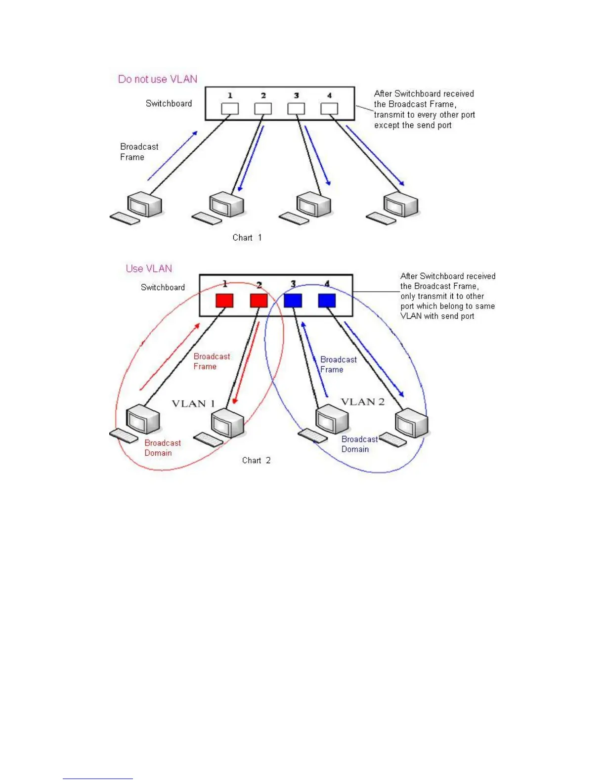 Note: chart 2 use red and blue to identify the different VLAN, but in practice,