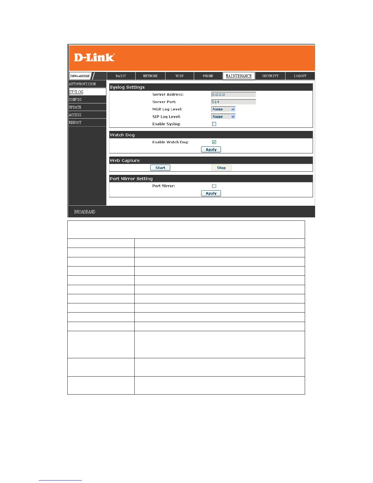 D-Link DPH-400G - Syslog Configuration