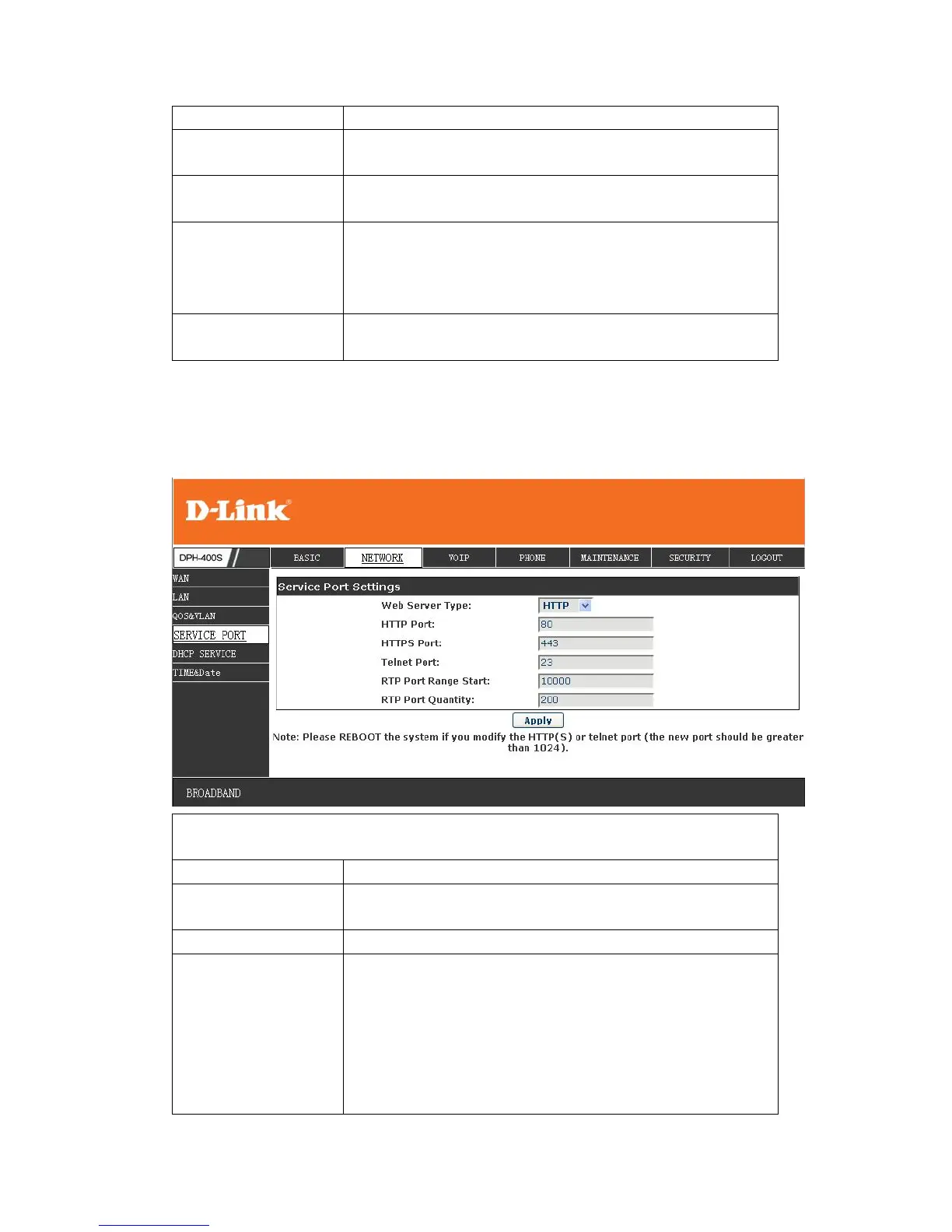 You can set the port of telnet/HTTP/RTP by this page.