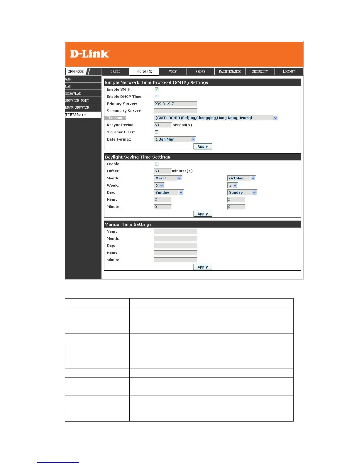 Secondary Server Set SNTP Secondary Server IP address.