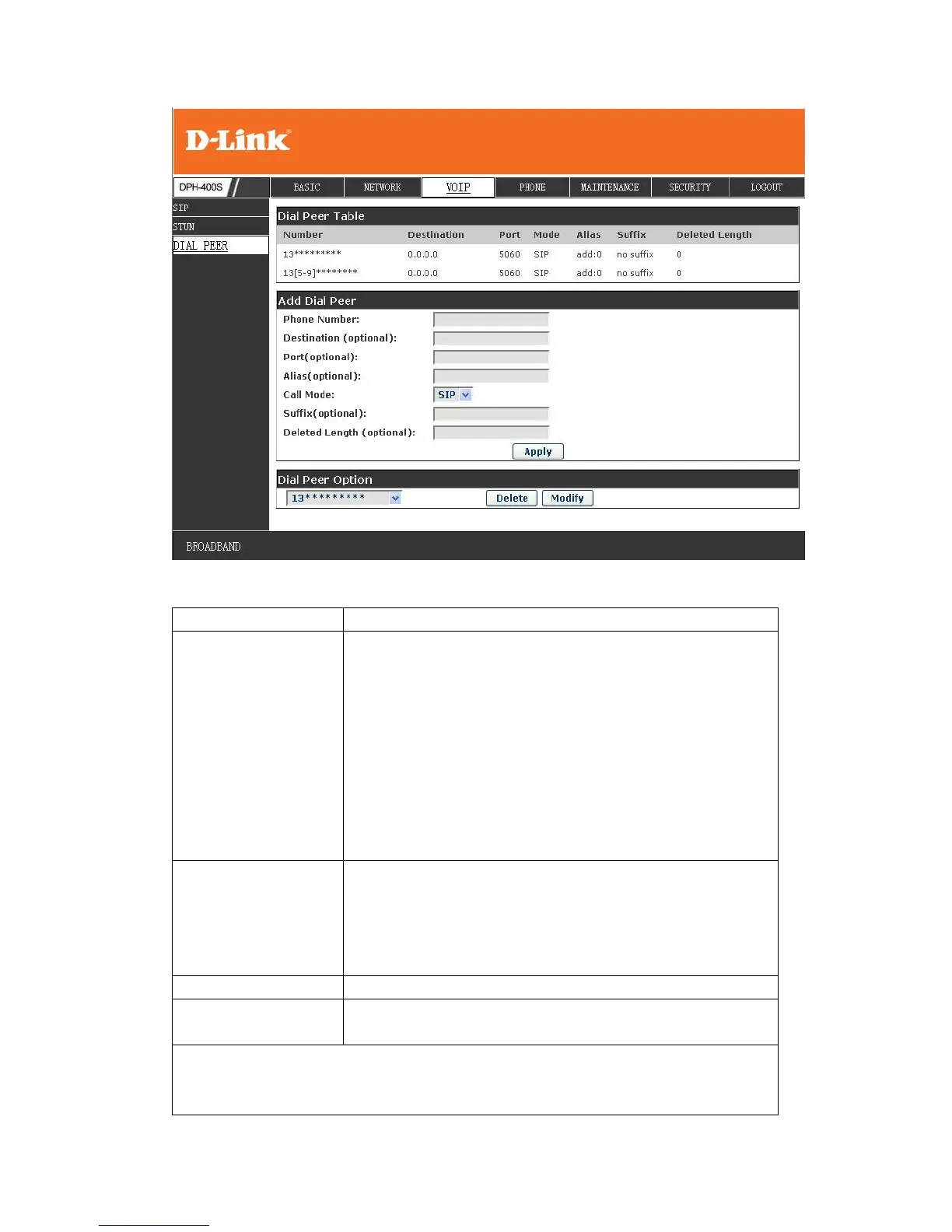 If you want to set peer to peer call, please input