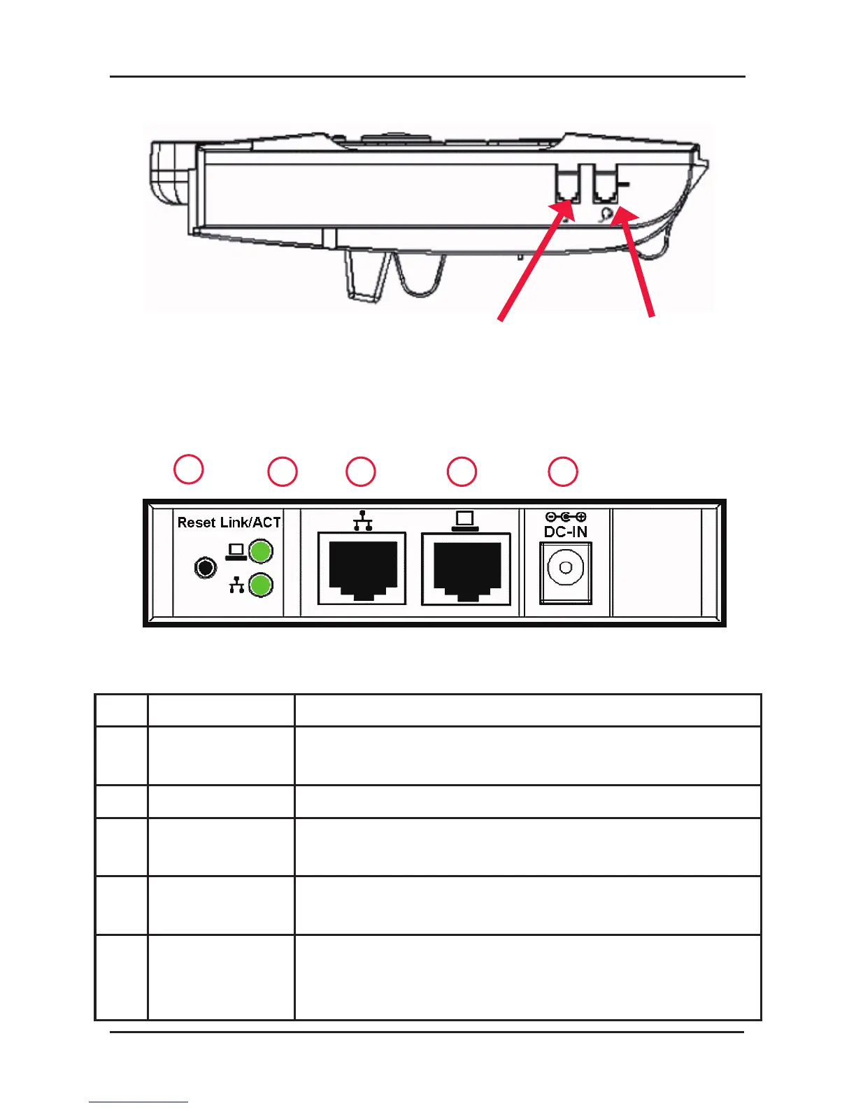 1 Reset button Reset the settings to the factory defaults