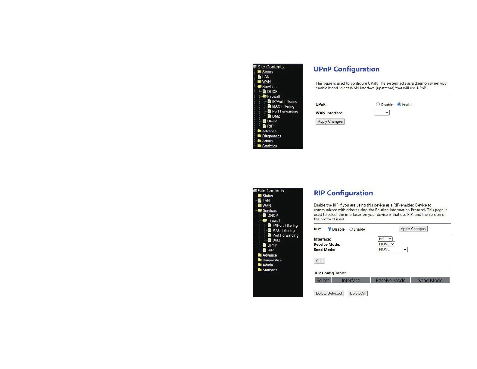 Click Services > RIP, Enable the RIP if you are using this device as a RIP