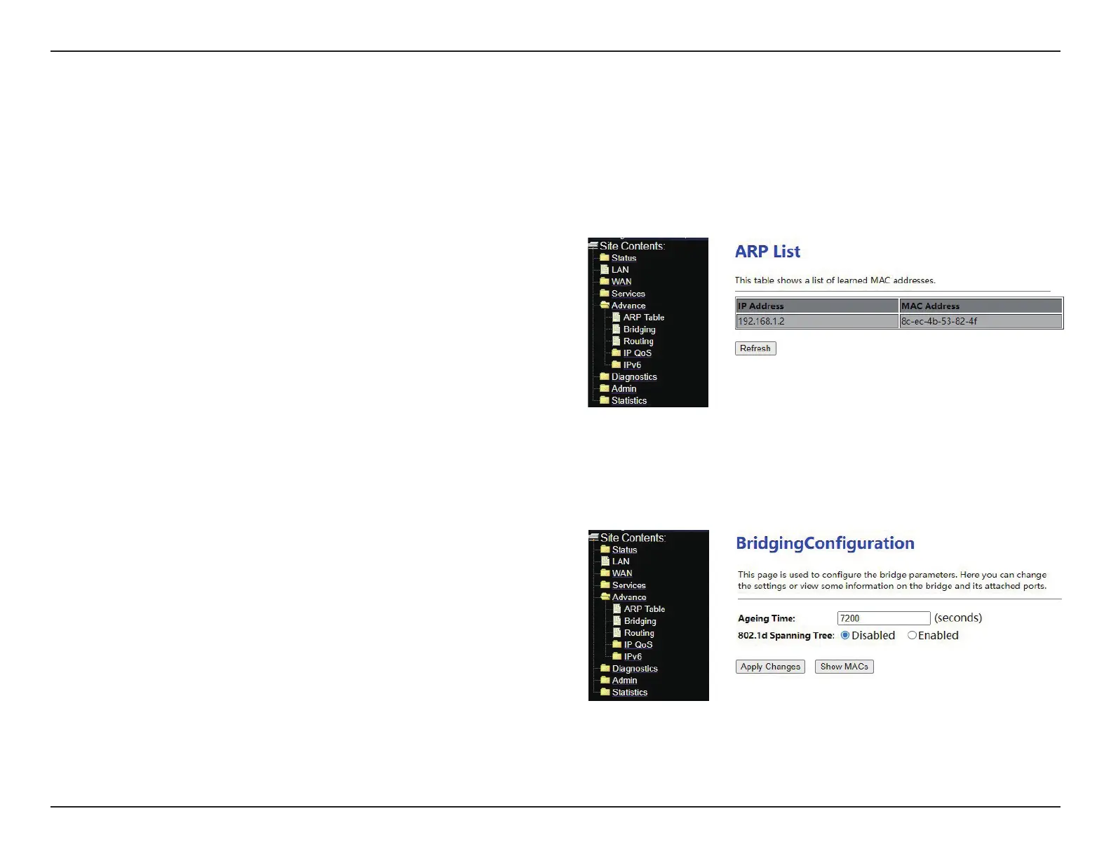 Choose Advance > Bridging. The page as shown in the right gure