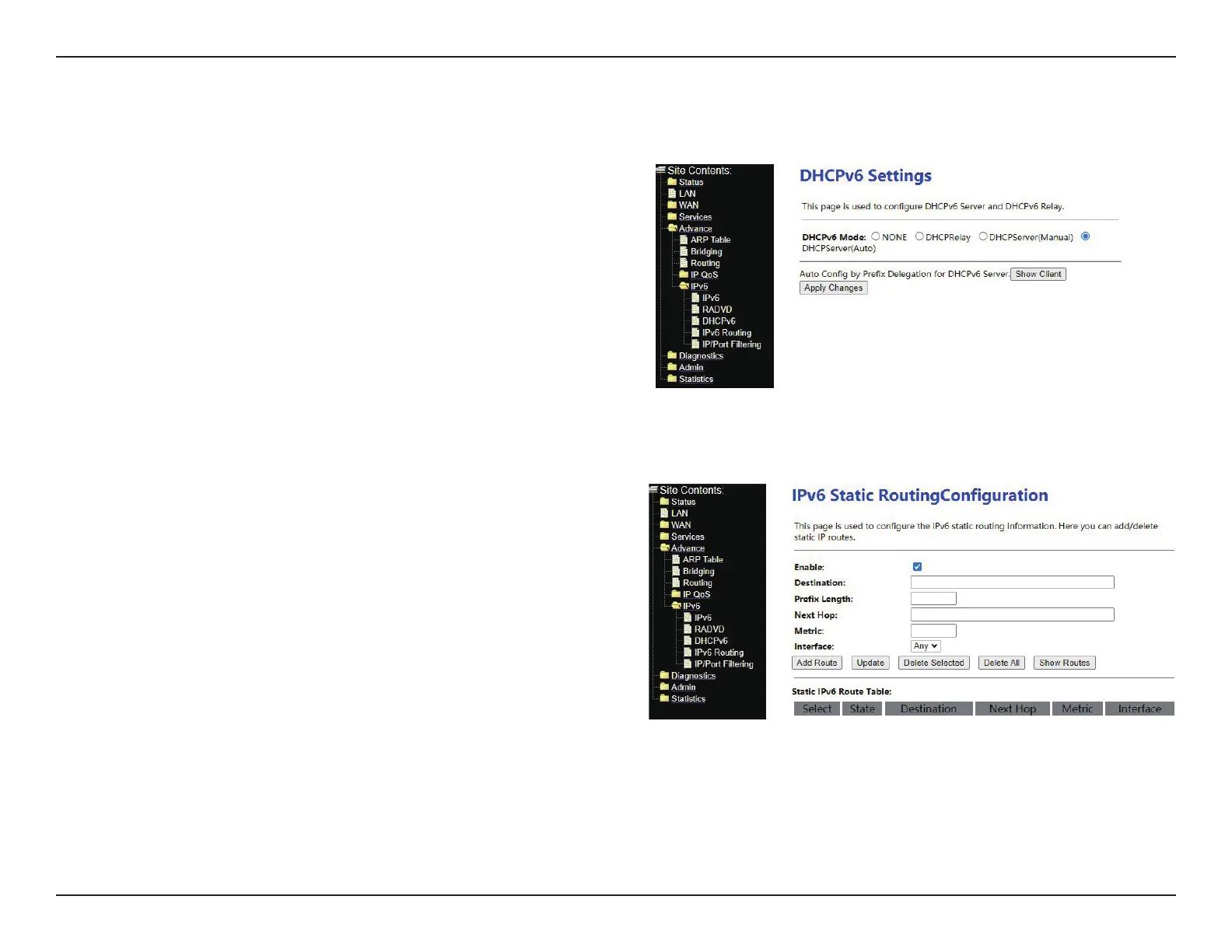 Click Advance > IPv6 > IPv6 Routing, This page is used to congure the