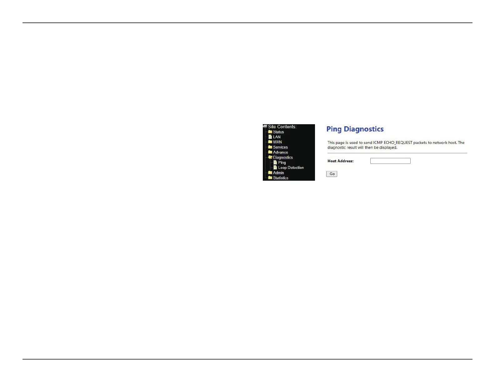 Choose Diagnostics, the tab shown in the following gure appears. This tab that is displayed contains Ping and Loop Detection.