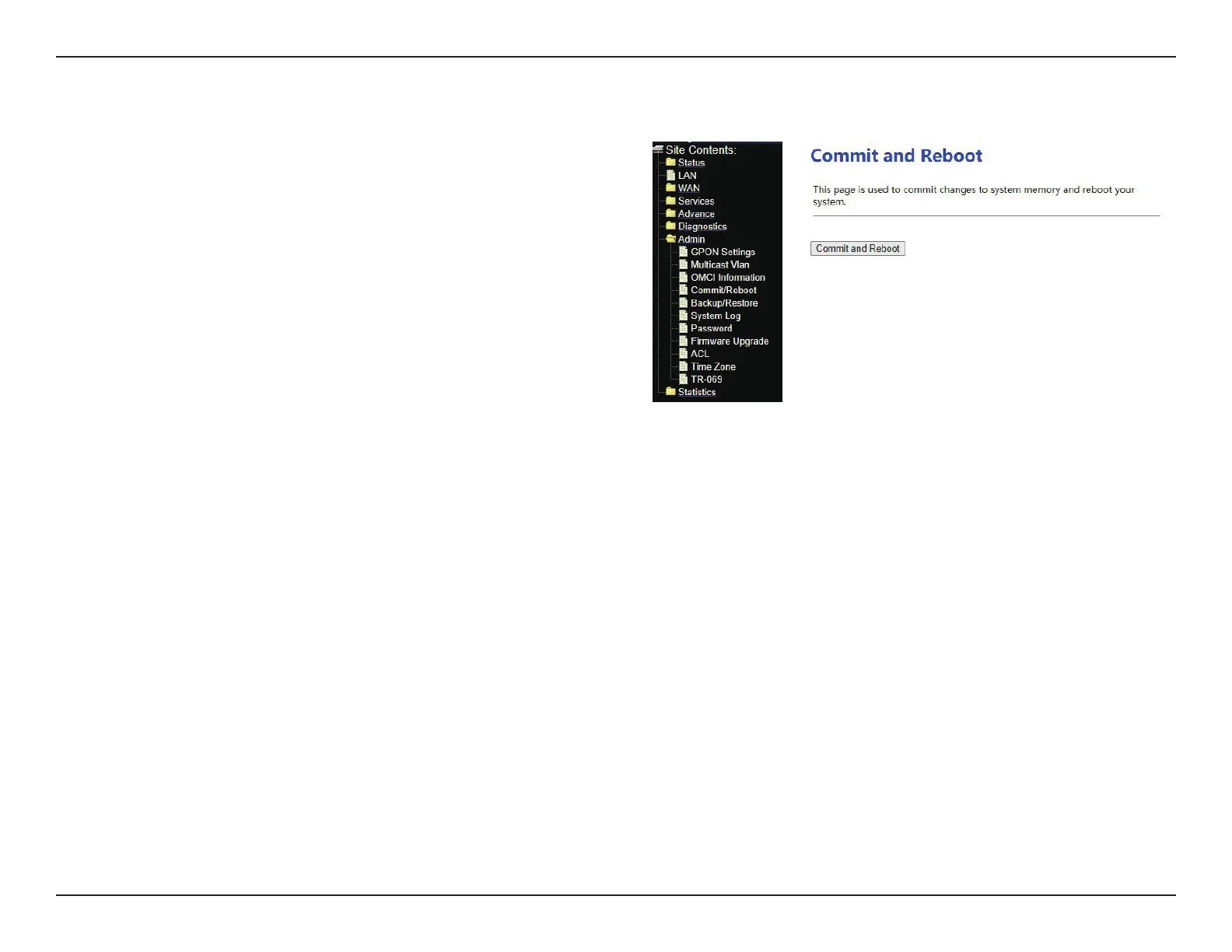 Choose Admin > Commit/Reboot, the page shown in the right gure