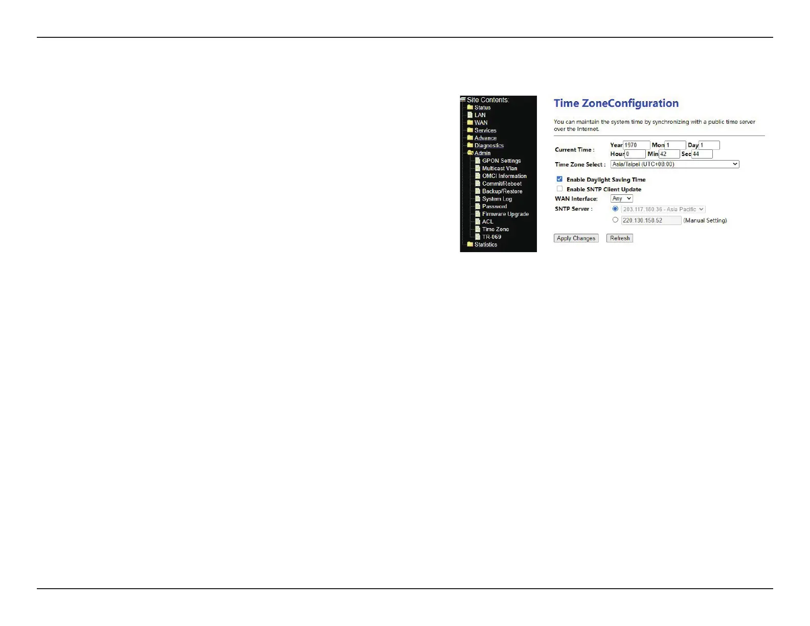 Choose Admin > Time Zone, the page shown in the right gure appears. This