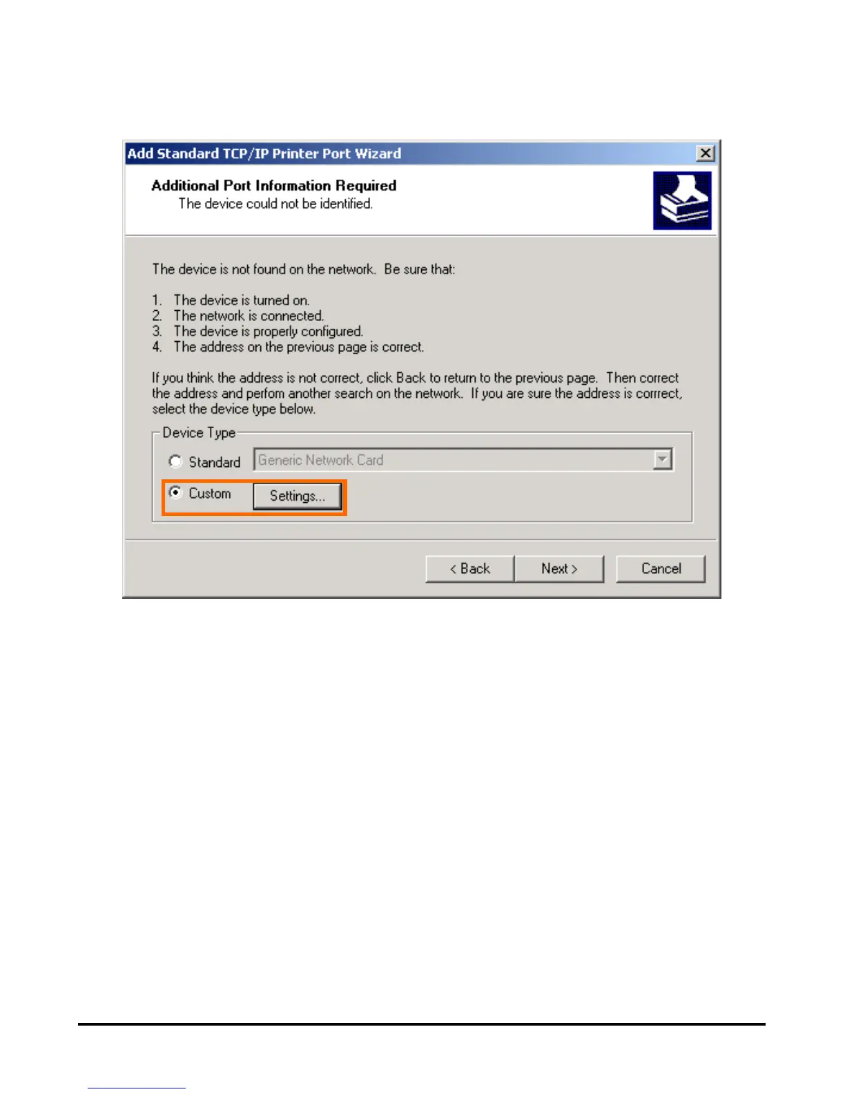 Select Custom and click Settings.