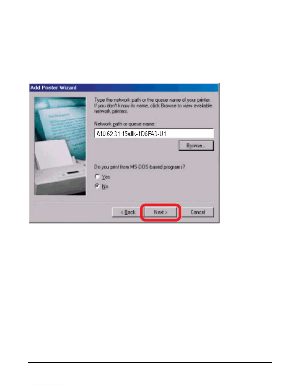 server. Select Yes or No to enable or disable printing from MS-DOS based programs.