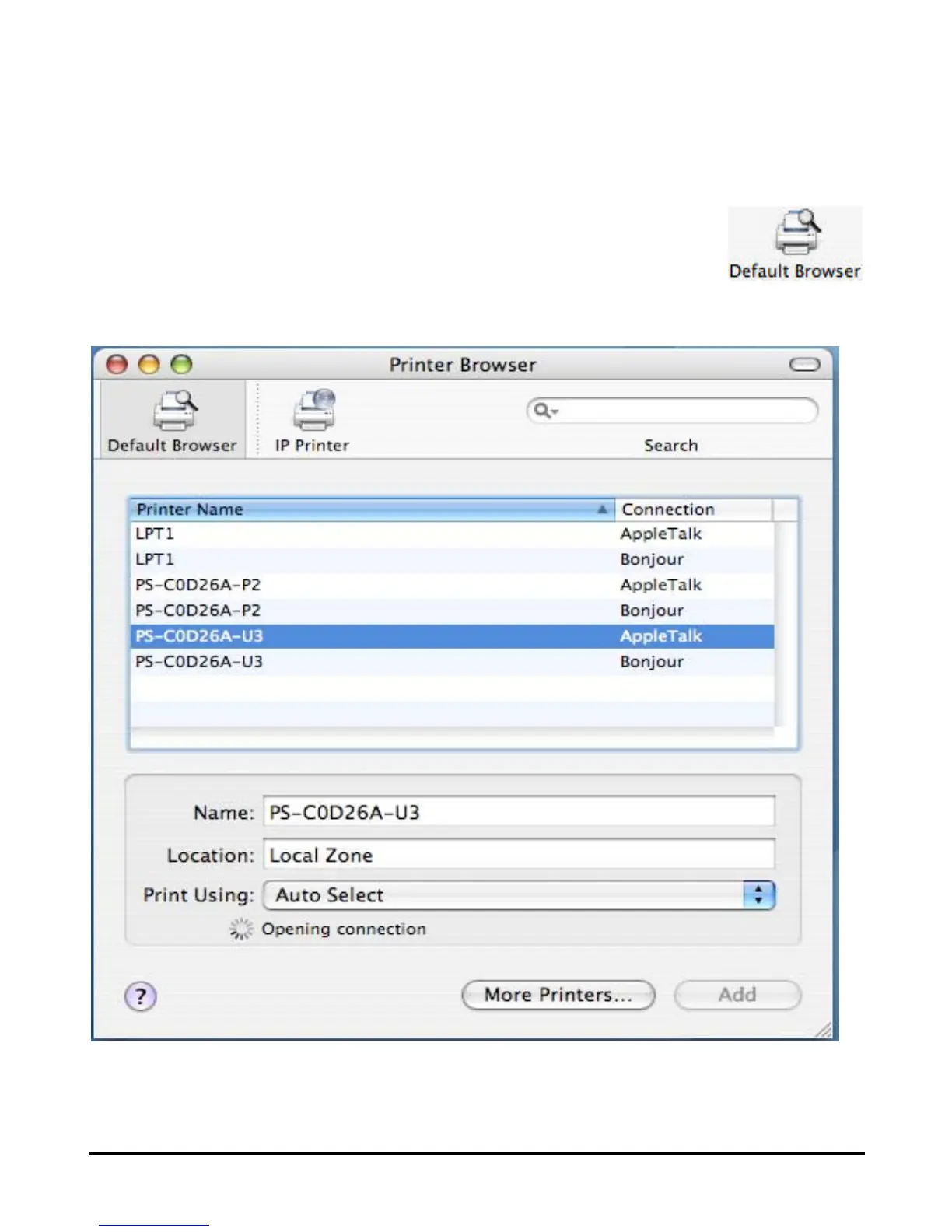 To add an AppleTalk-enabled or Bonjour-enabled printer, click on the
