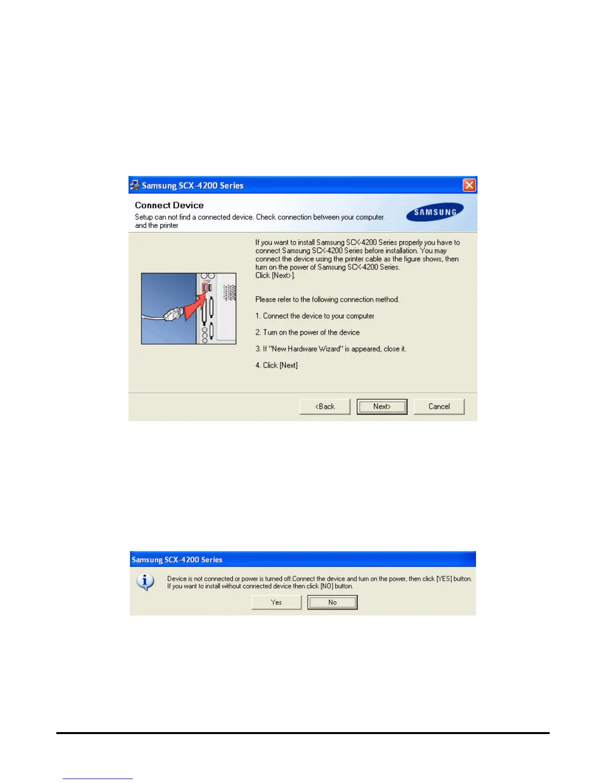 2. Soon after Next> button is clicked, the program will prompt you again to connect