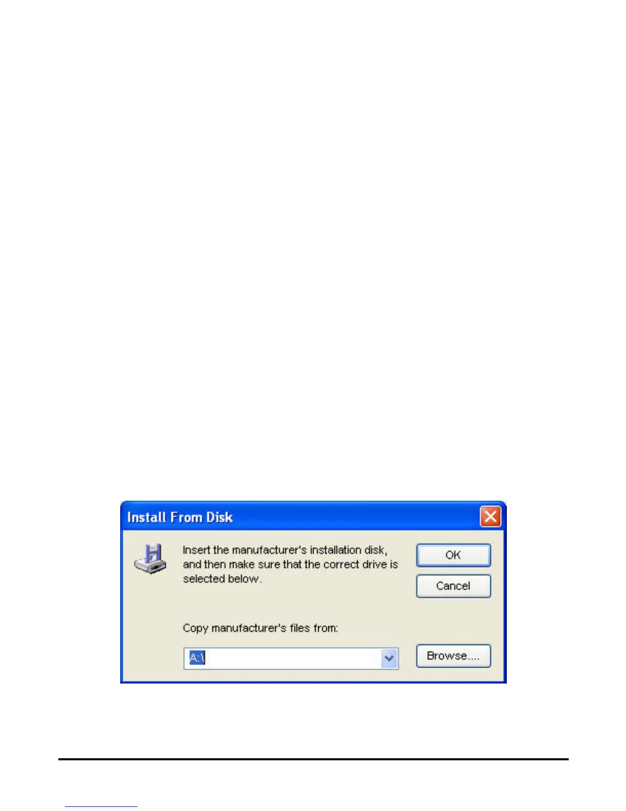 Click Have Disk button to bring up the following window. Insert the manufacture’s
