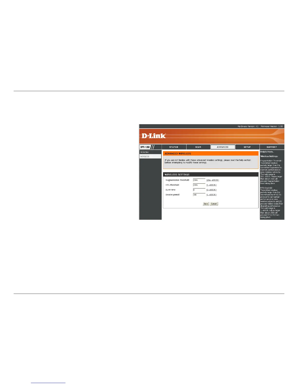 If you are not familiar with these Advanced Wireless settings, please read the help section before attempting to modify these settings.