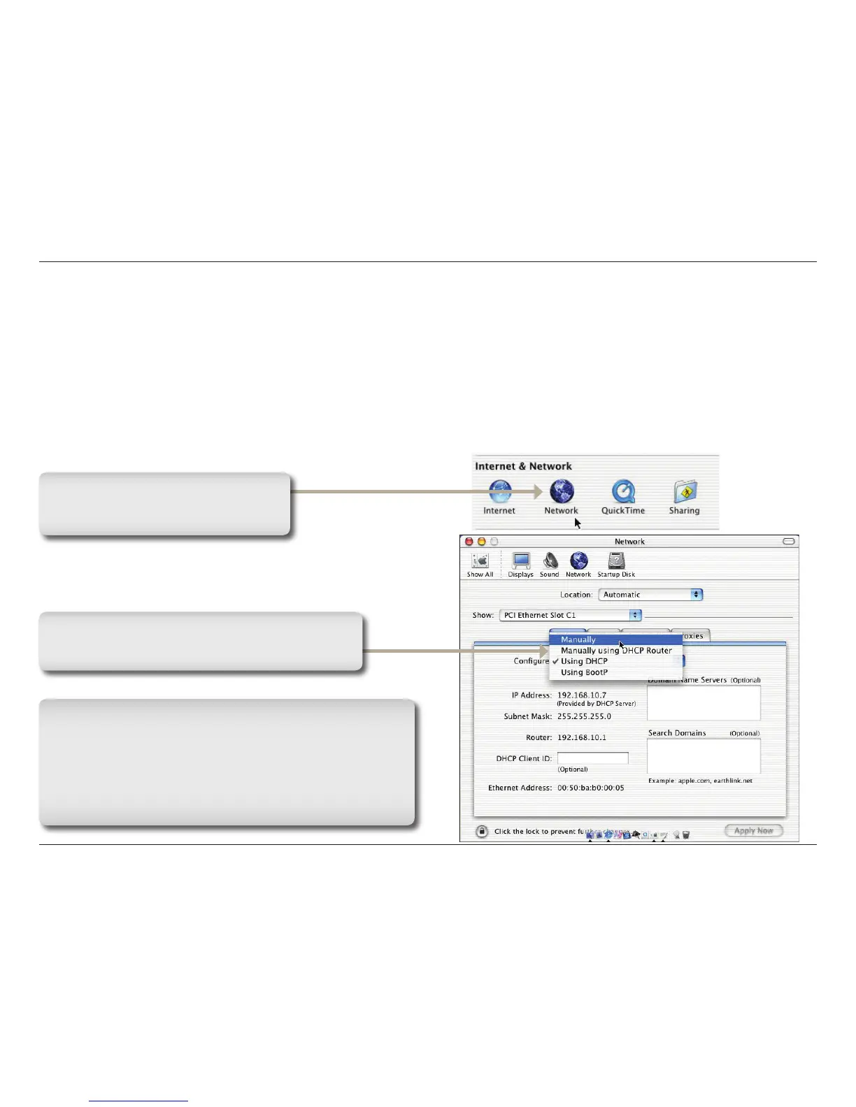 provided in the Quick Installation Guide, change the IP address of your Macintosh to access the Print Server’s web