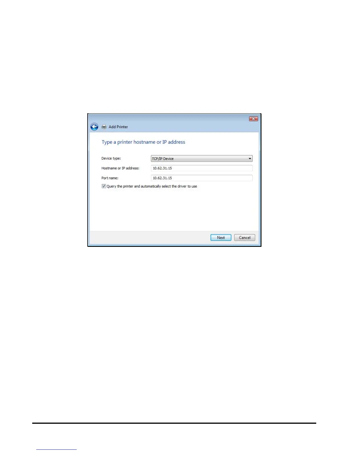 In the Hostname or IP address field, type the IP address of the Print Server (e.g.