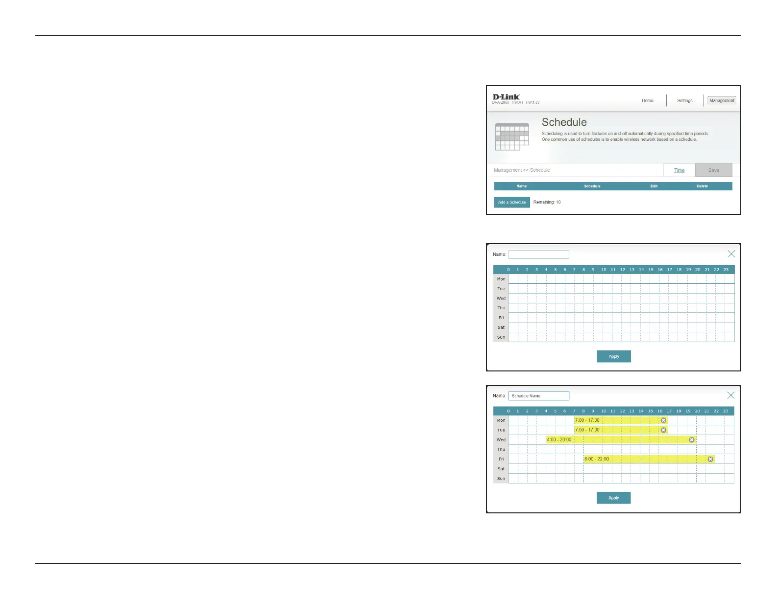 create, edit, or delete schedules, from the Time page click Schedule. To return to
