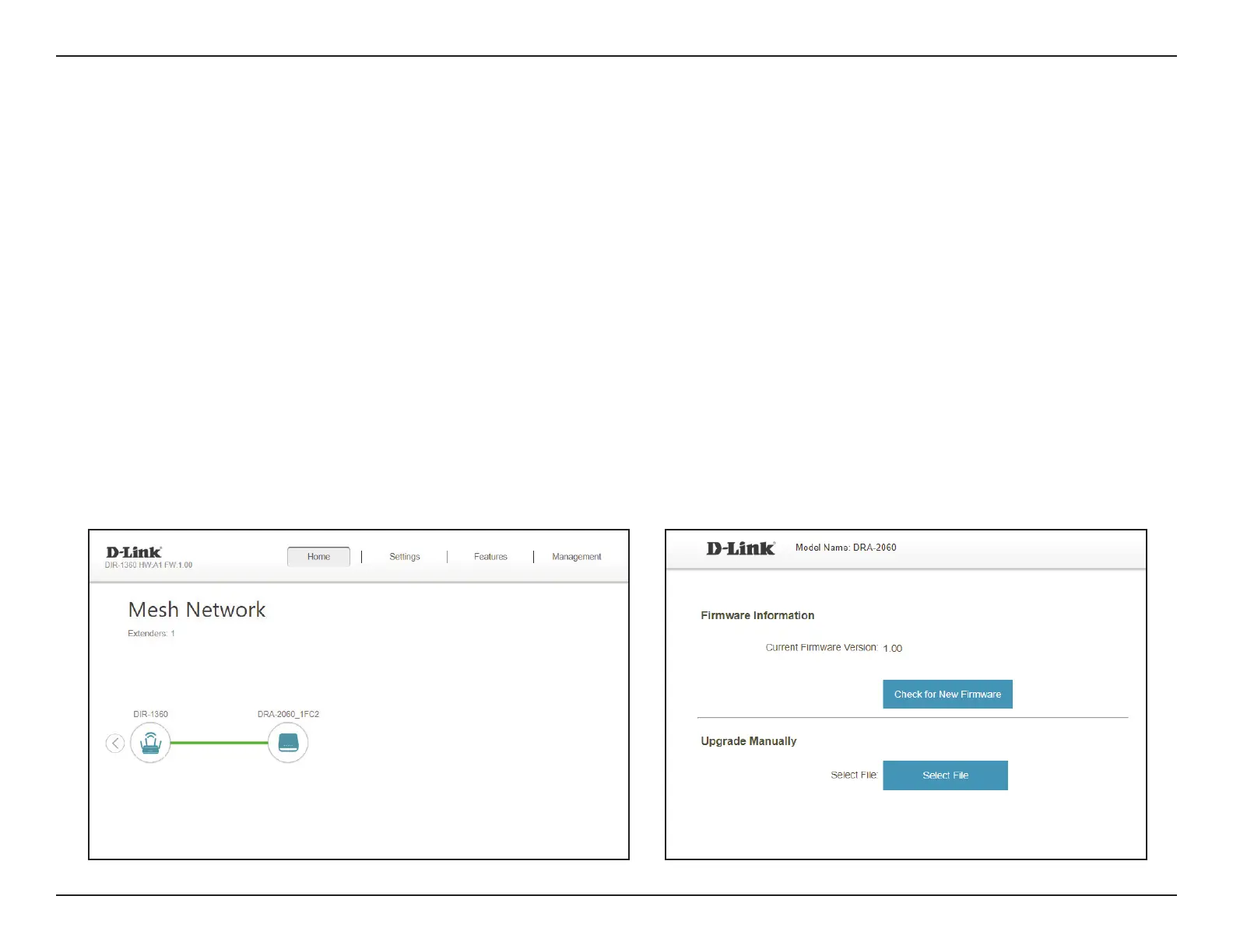 DRA-2060 can be congured from the main router’s conguration page. Refer to “Home - Connected to a Wi-Fi Mesh Router” on