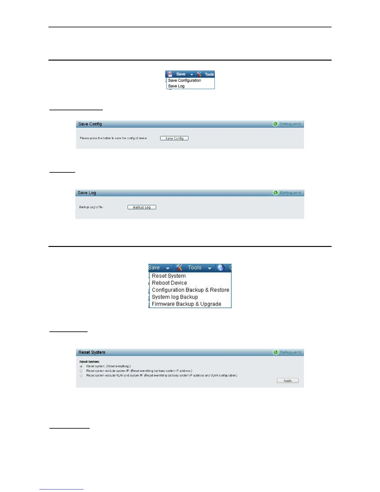 Backup and Restore, System log Backup, Firmware Backup and Upgrade.