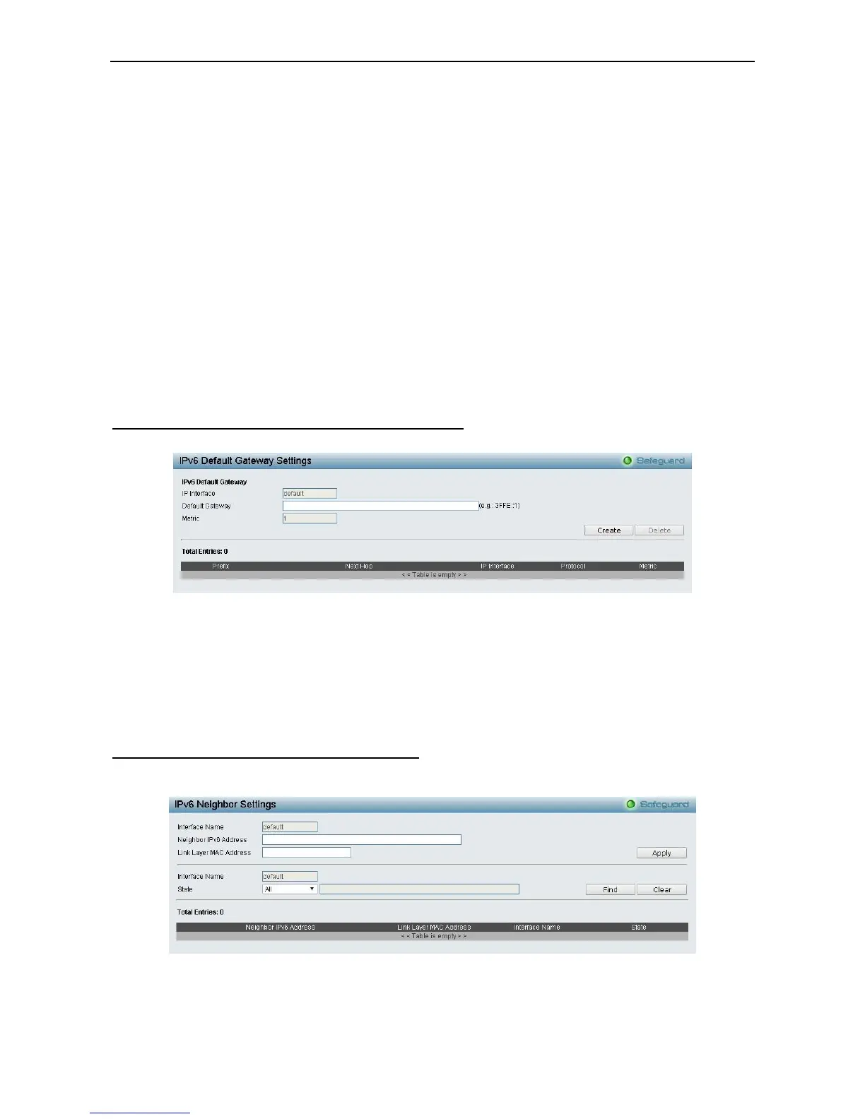 You can configure the Switch’s IPv6 neighbor settings. The Switch’s current IPv6 neighbor settings will be