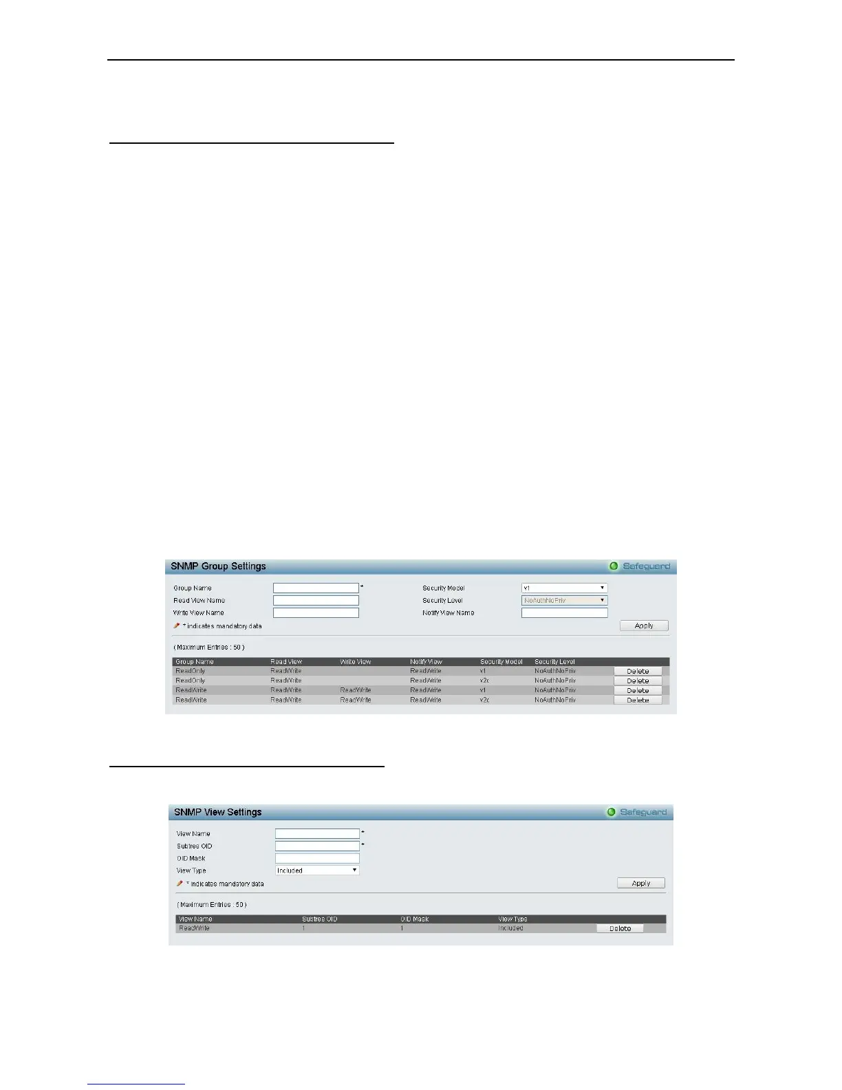 Notify View Name: Enter a SNMP group name for users that can receive SNMP trap messages generated