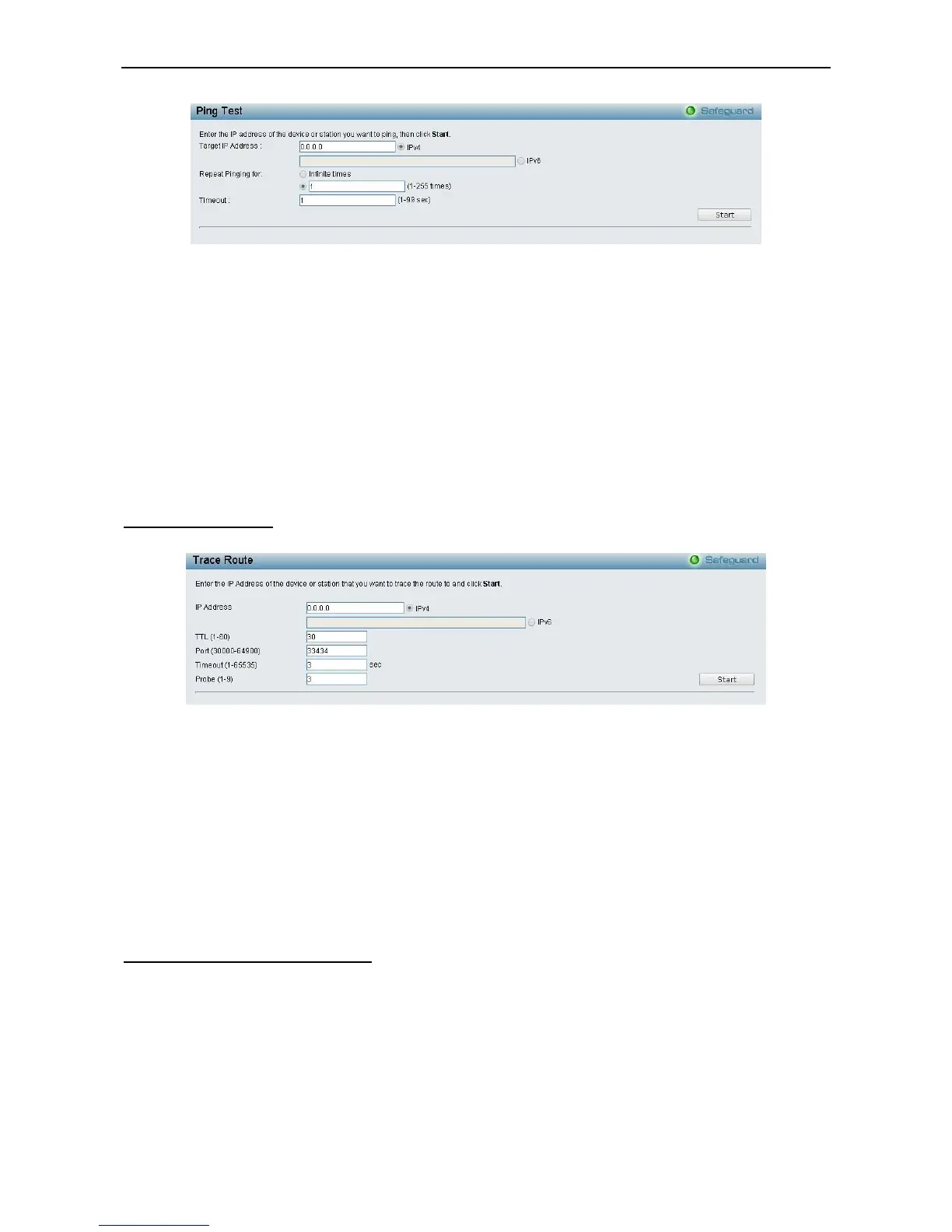 ping the Target IPv4 or IPv6 Address by clicking its radio button and entering a number between 1 and 255.