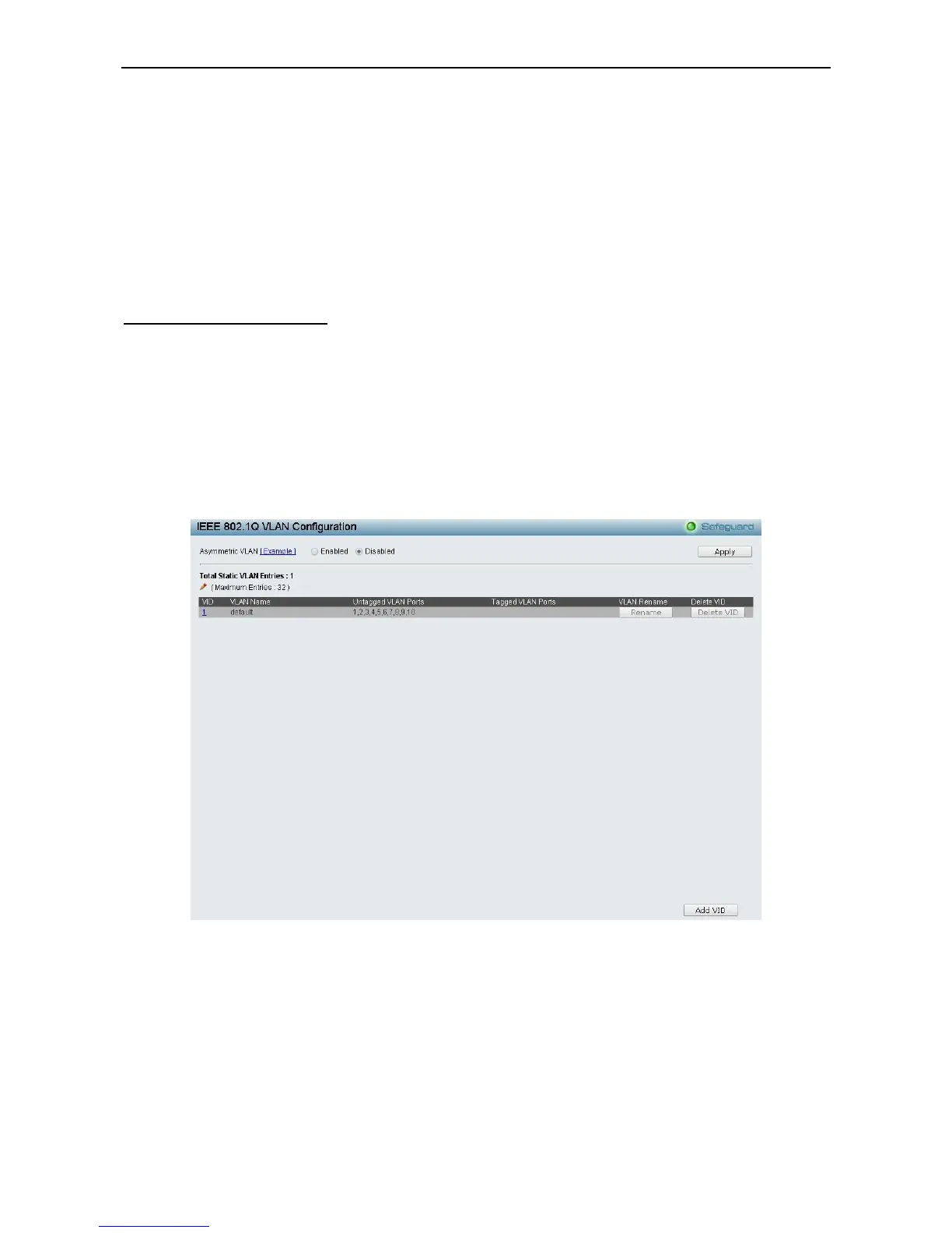 The IEEE 802.1Q VLAN Configuration page provides powerful VID management functions. The original