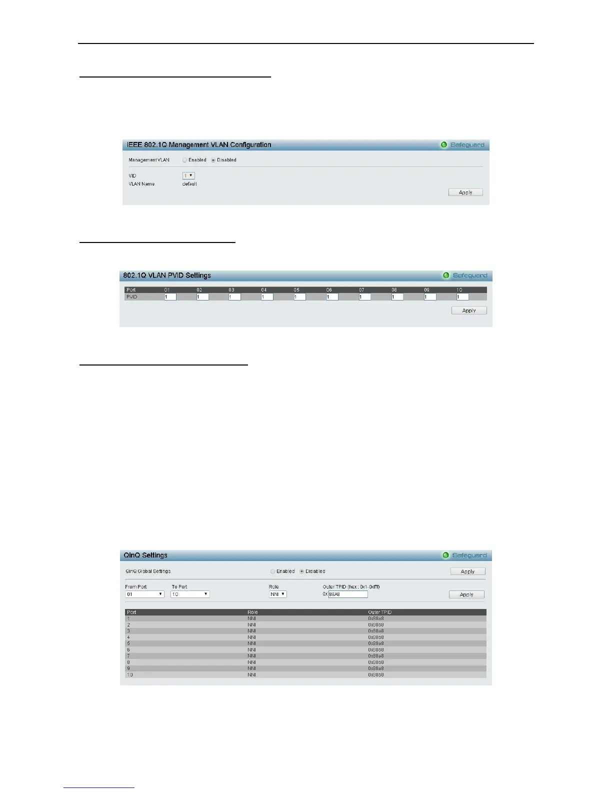 The 802.1Q VLAN PVID setting allows you to configure the PVID for each ports. Click Apply to implement
