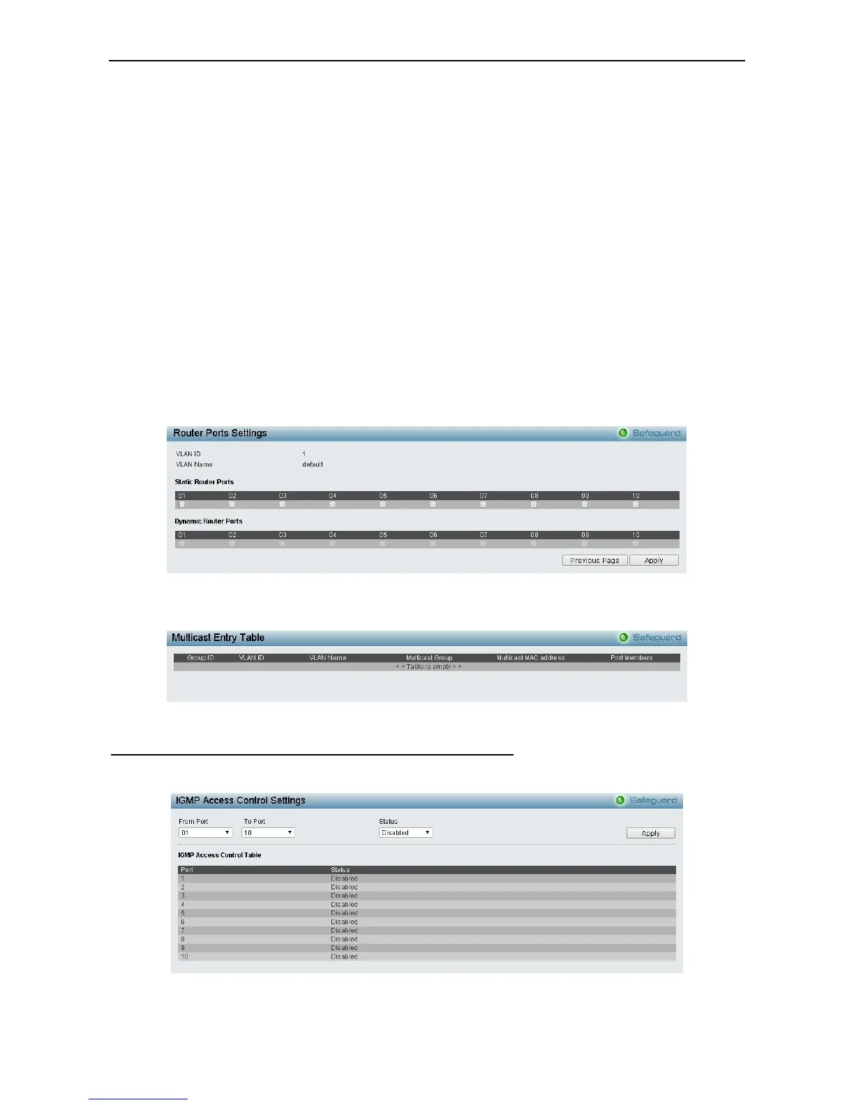 The IGMP Access Control Settings page allows you to enable or disable the IGMP access control of ports.