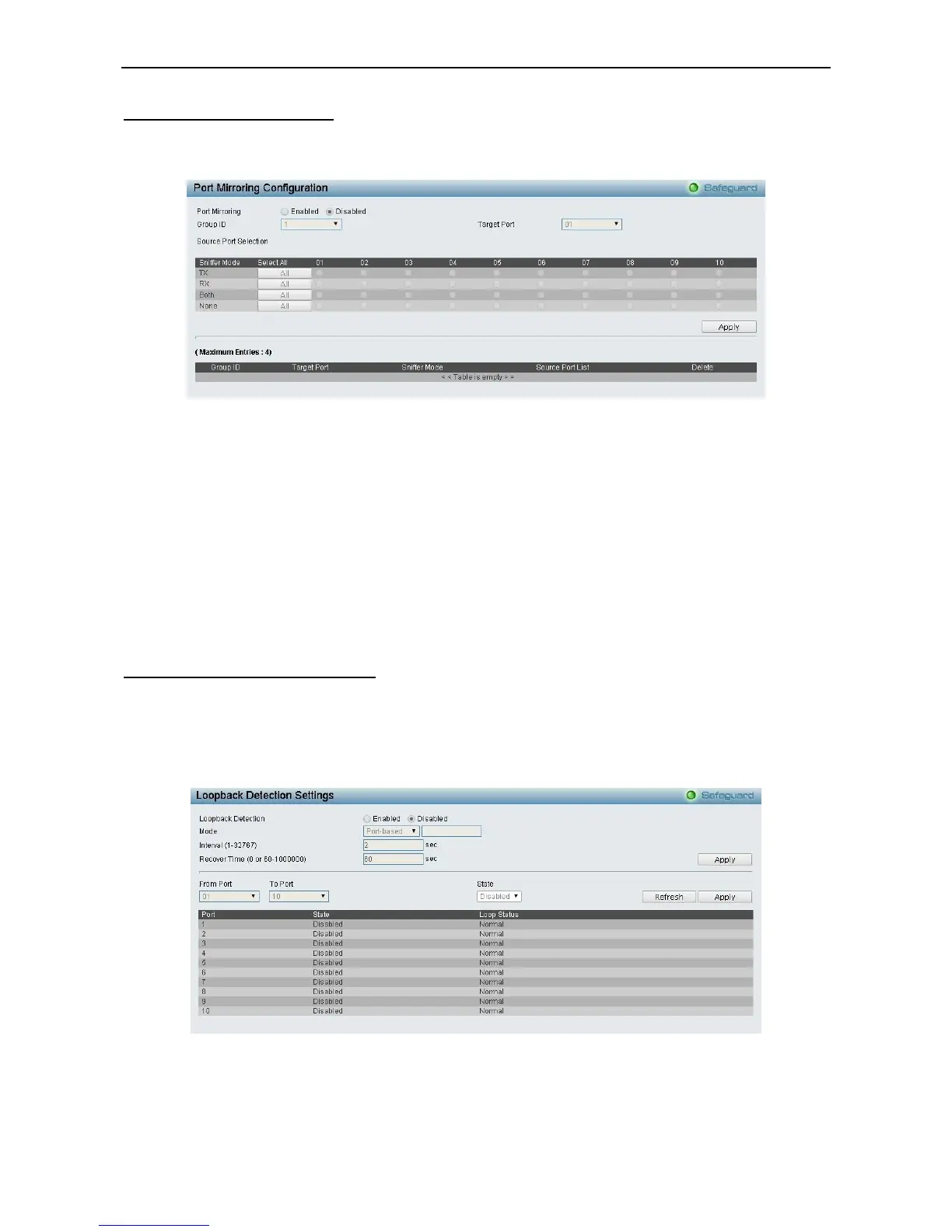 Loopback Detection function can be implemented on a range of ports at the same time. You may enable or