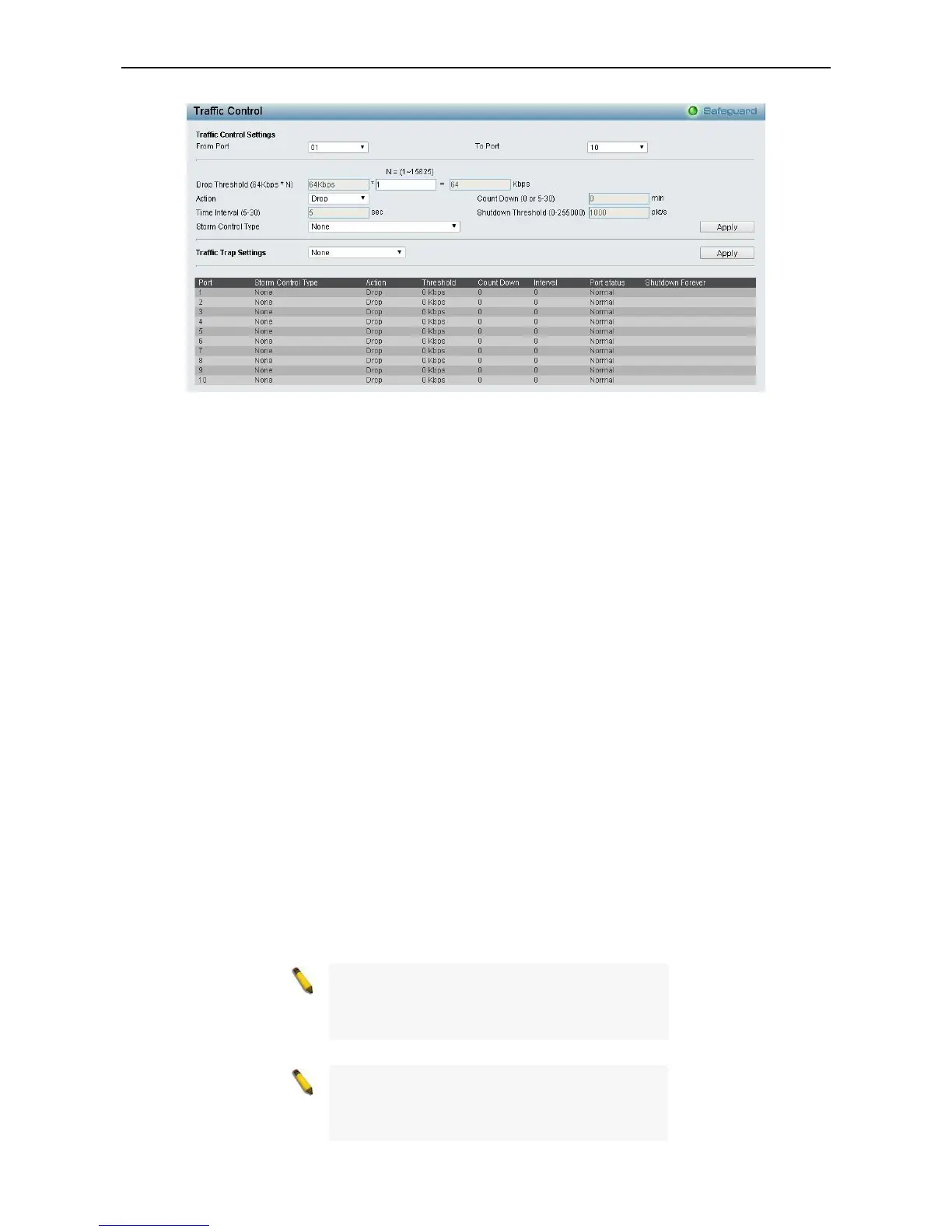 Drop Threshold (64Kbps * N): If storm control is enabled (default is disabled), the threshold is from of 64 ~