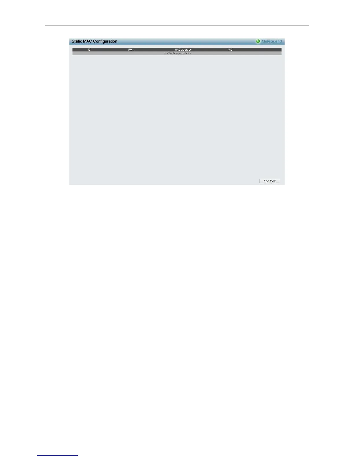 Click Add MAC button, select the Port, VID and enter the MAC address then click Apply to add a new MAC