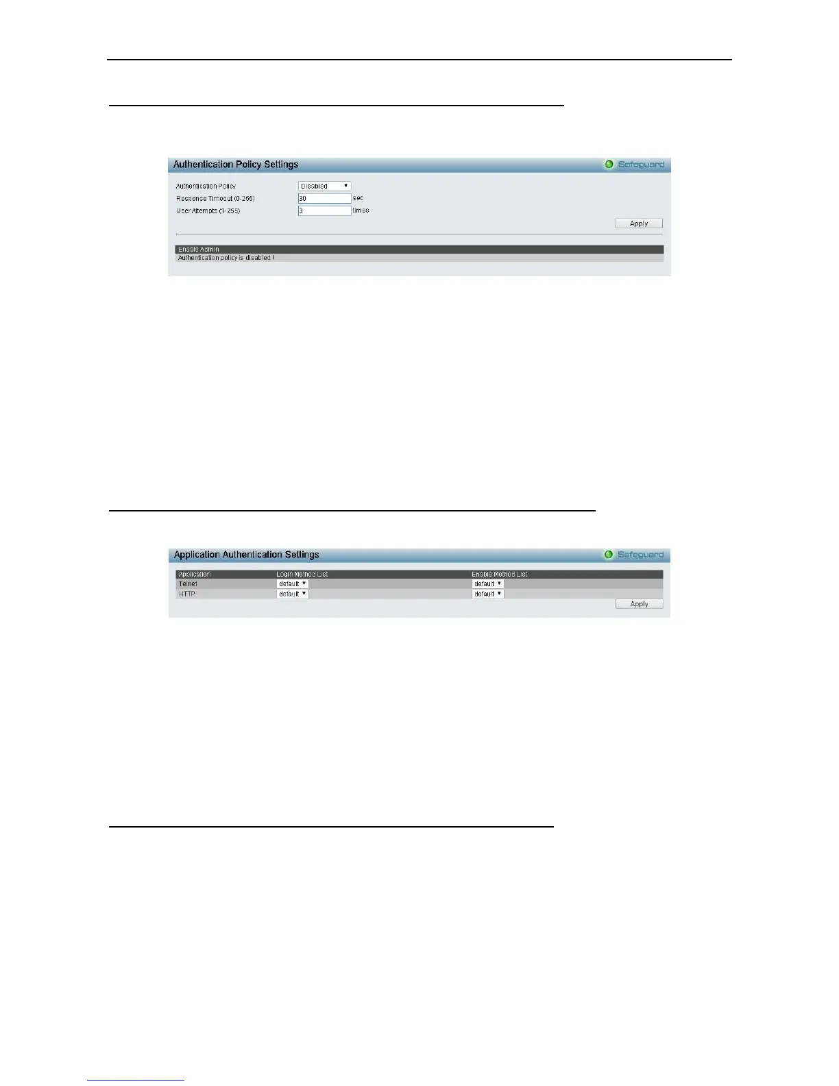 User attempts (1 - 255): Enter the maximum number of times the Switch will accept authentication attempts.