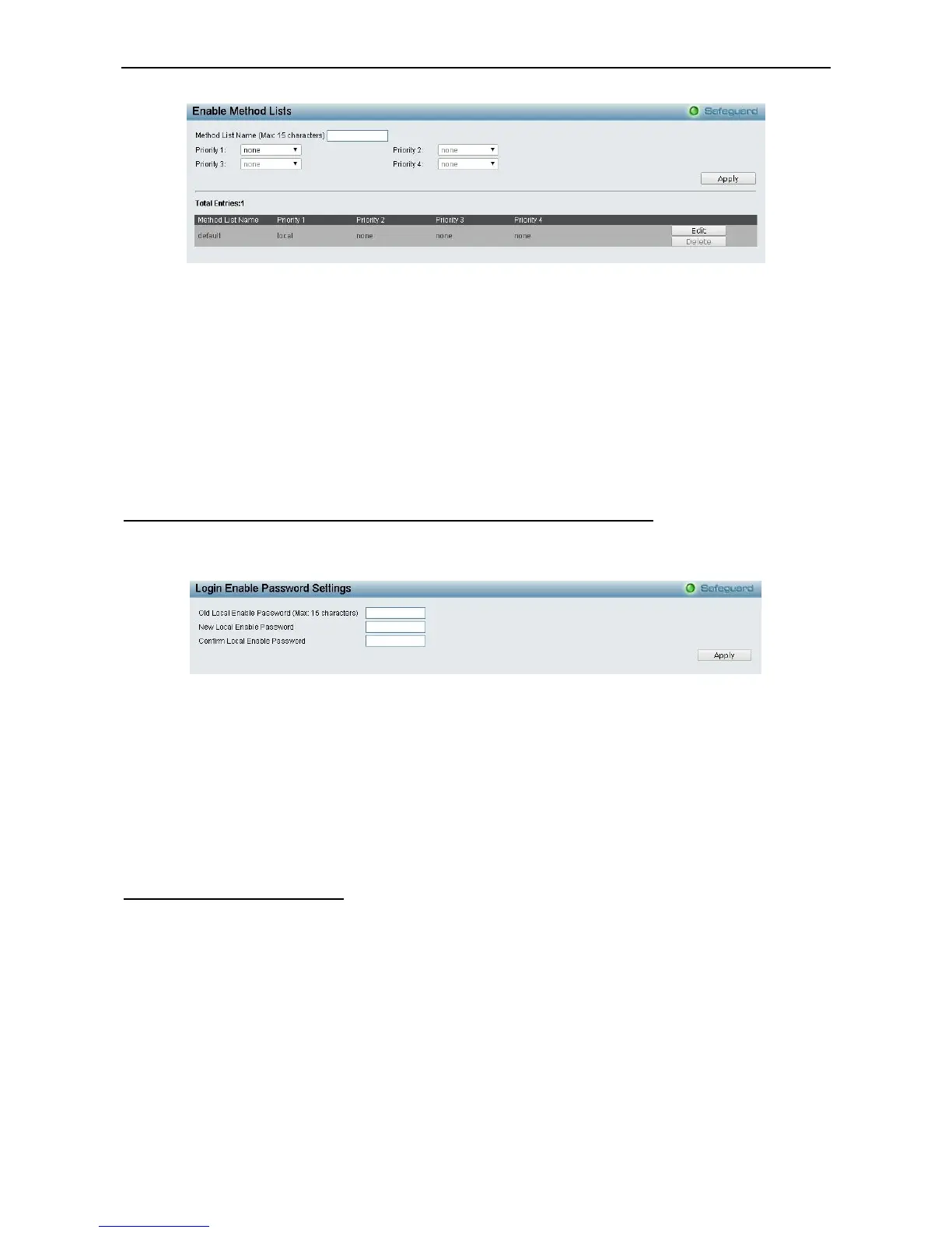 users attempting to access Administrator Level privileges on the Switch. The user may set a password of up