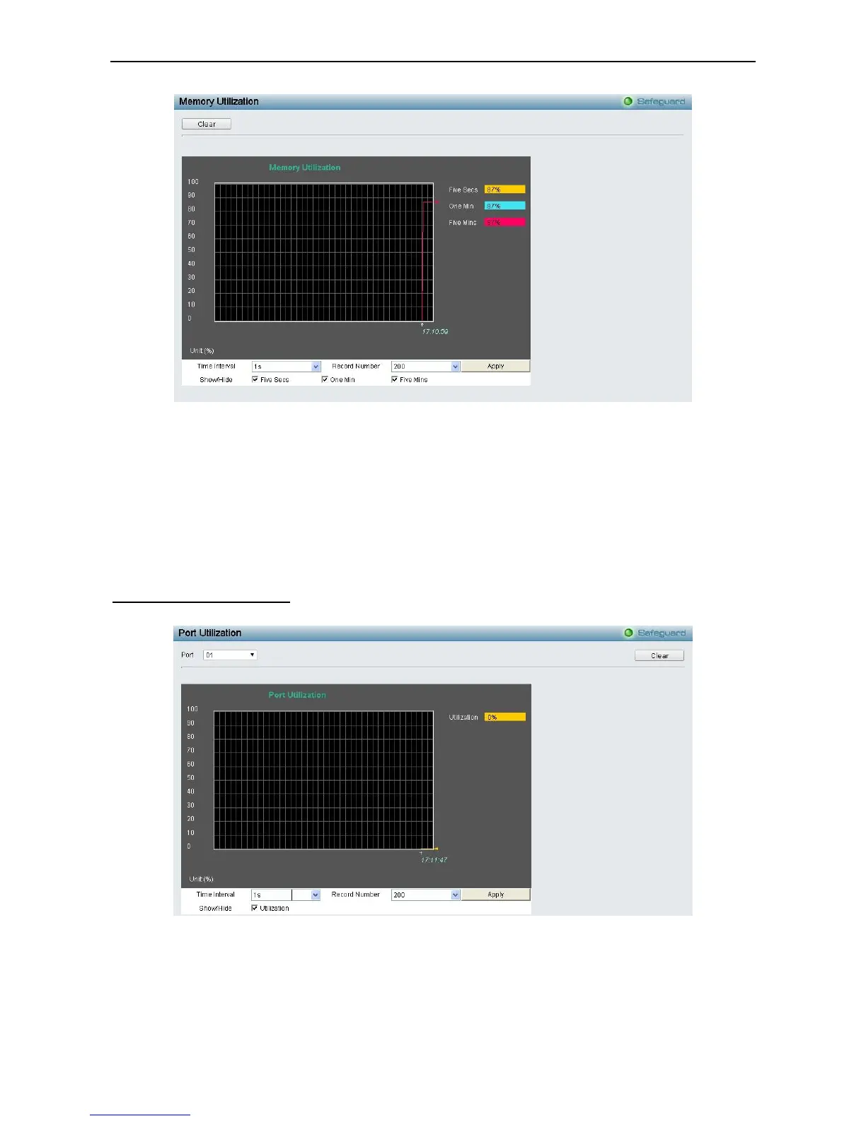 You may use the real-time graphic of the Switch at the top of the web page to view utilization statistics per