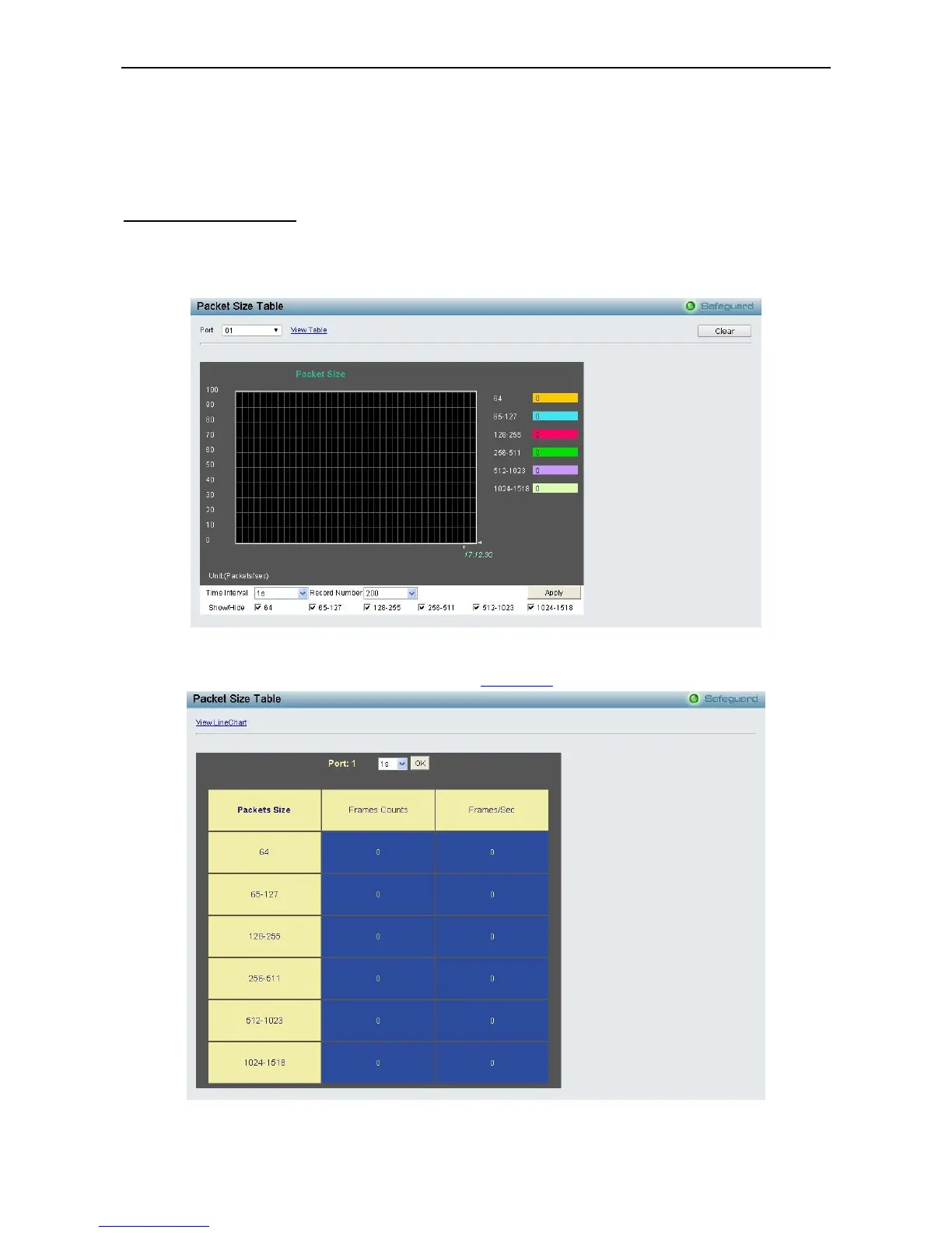 The Web Manager allows packets received by the Switch, arranged in six groups and classed by size, to be