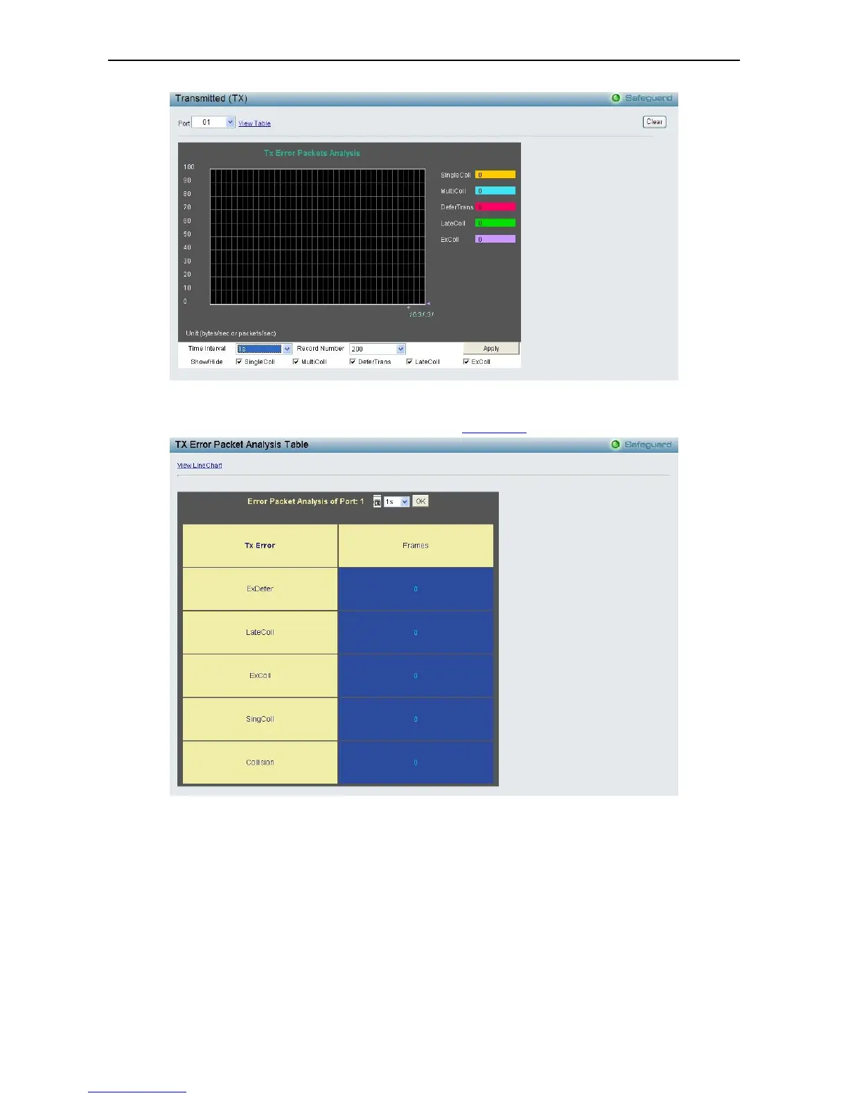 To view the Transmitted Error Packets Table, click the link View Table, which will show the following table: