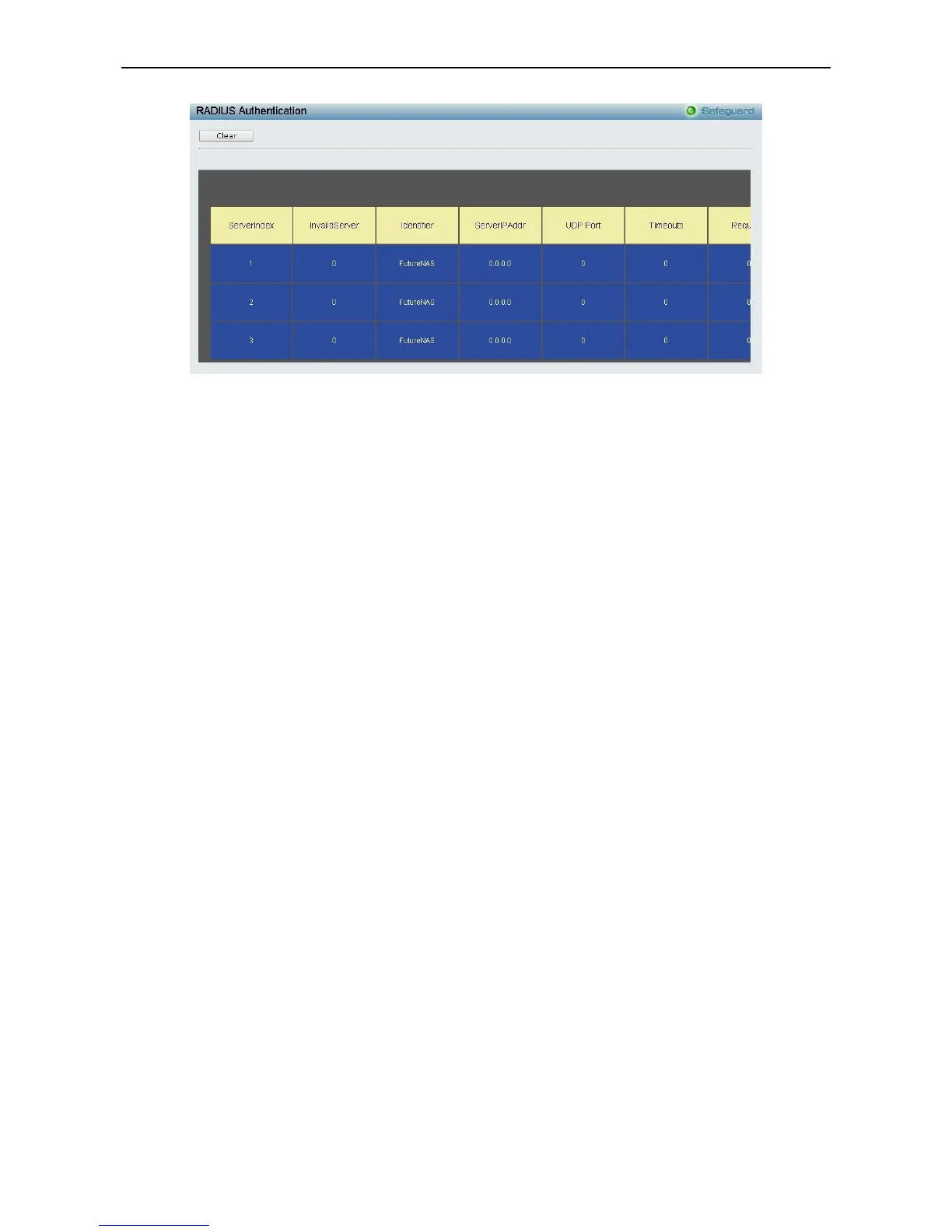 Server Index: The identification number assigned to each RADIUS Authentication server that the client