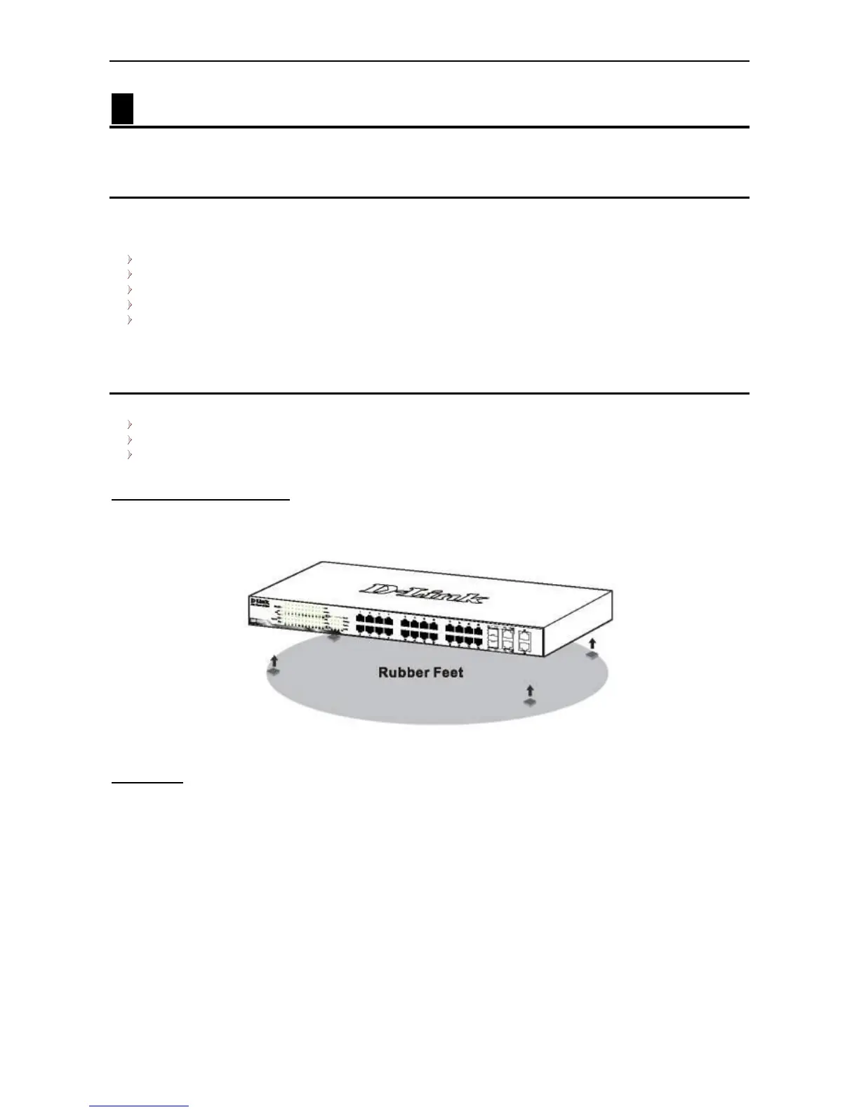 When installing the switch on a desktop or shelf, the rubber feet included with the device must be attached to