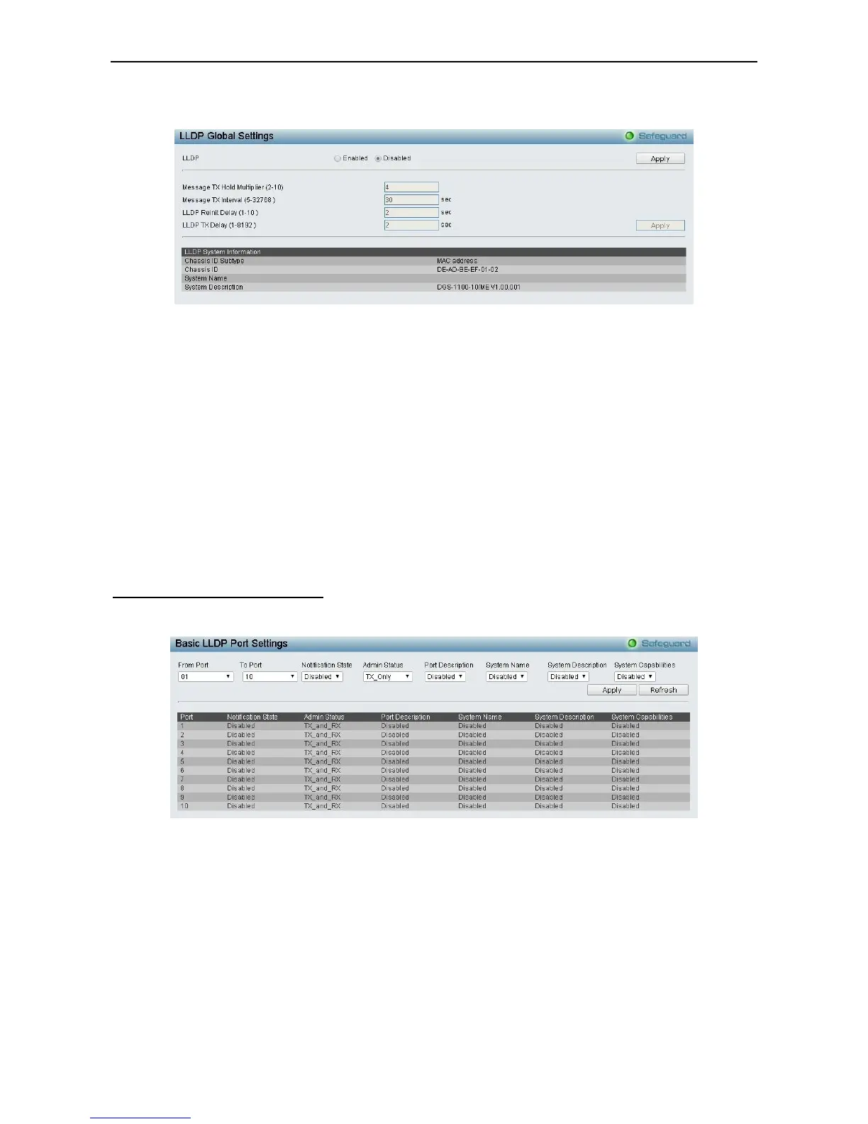LLDP: When this function is Enabled, the switch can start to transmit, receive and process the LLDP packets.