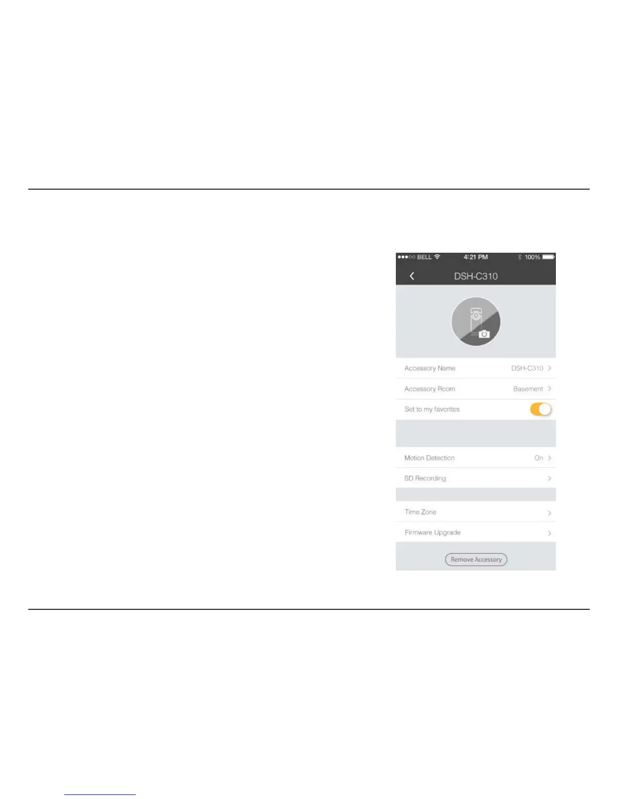 To view your camera's settings, open the Omna app, go to the Settings menu, tap Accessory, then select your camera from the list.