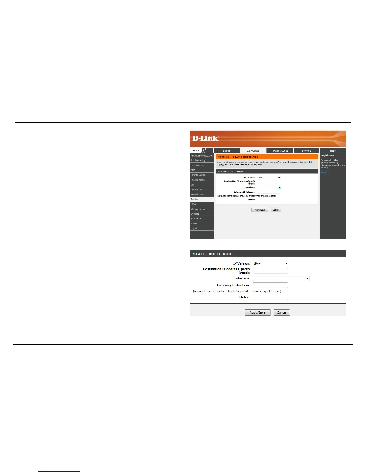 Gateway IP Address: Enter the gateway IP address for this route entry here.