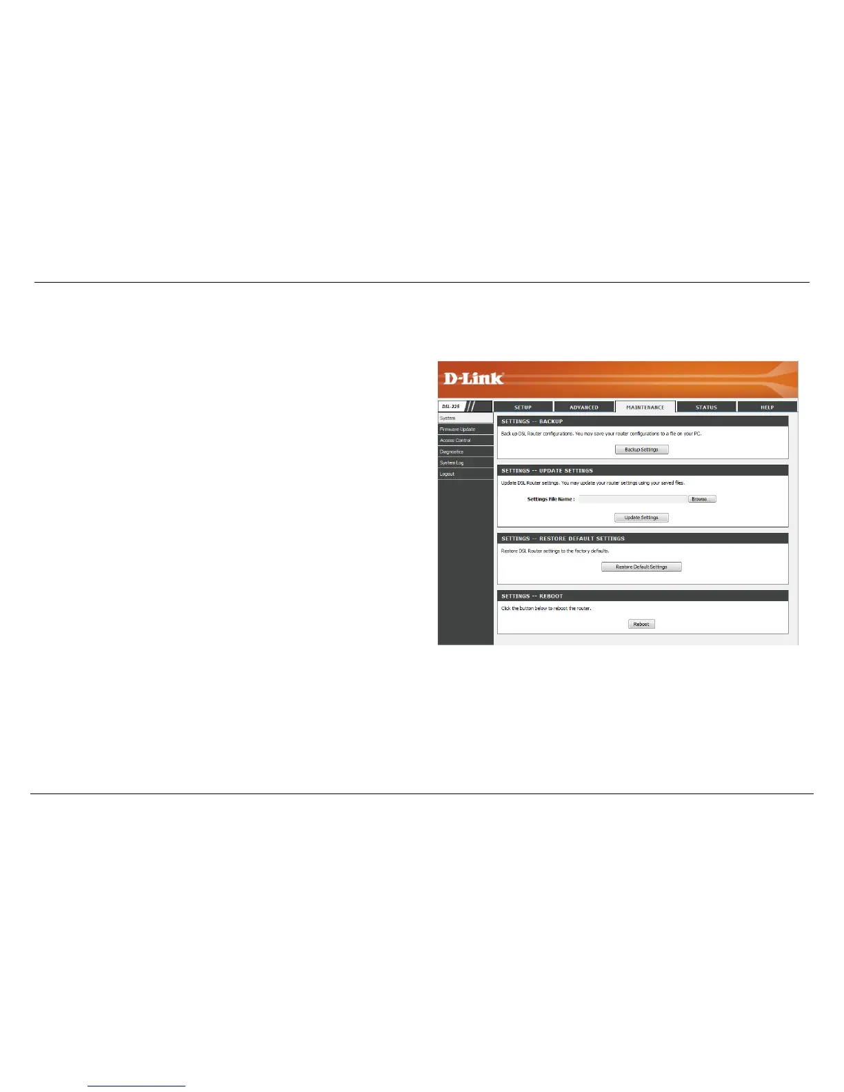 Settings, Restore to Factory Default Settings, and a System Reboot.