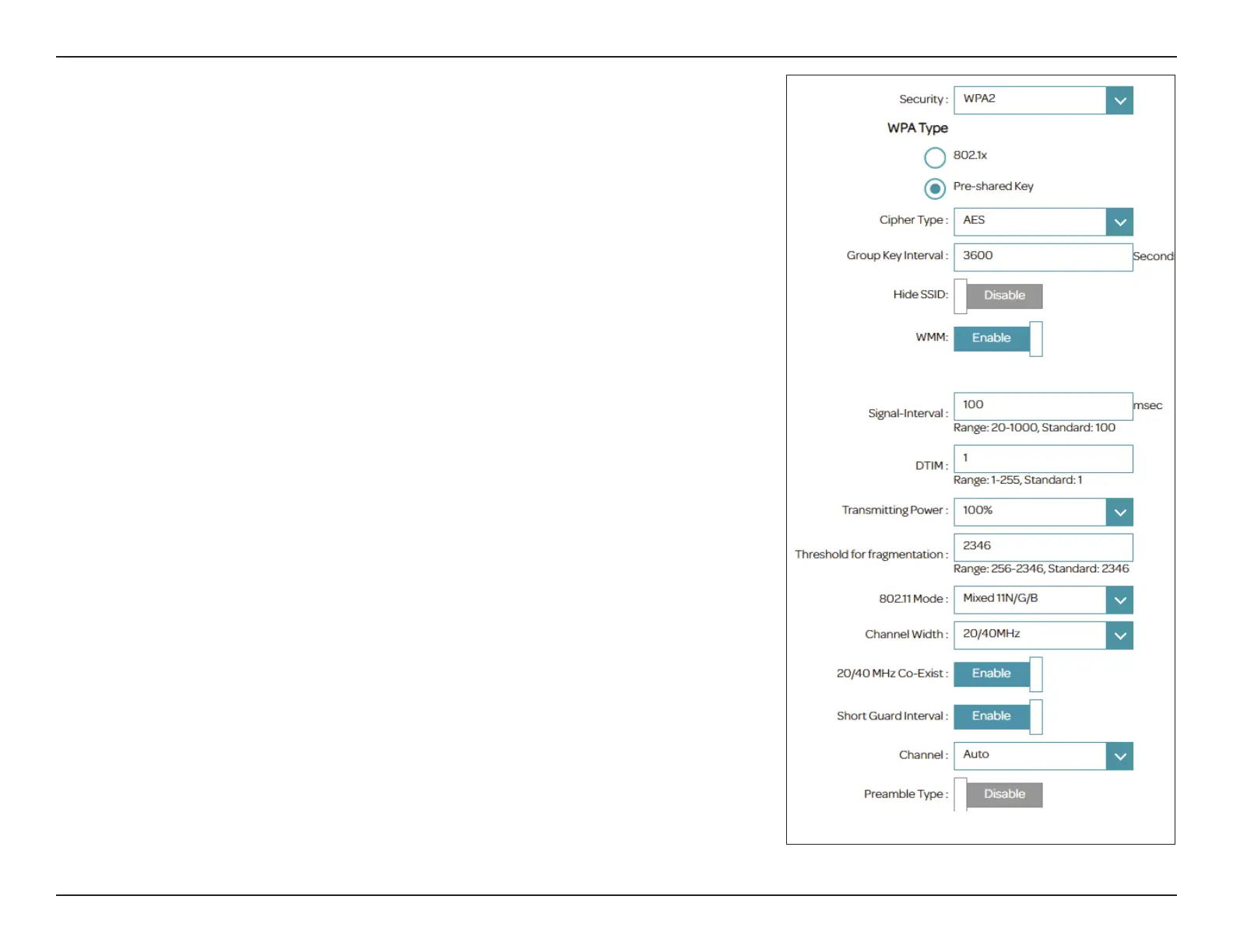 Cipher Type: Select either AES, TKIP or Both (AES/TKIP). The options vary