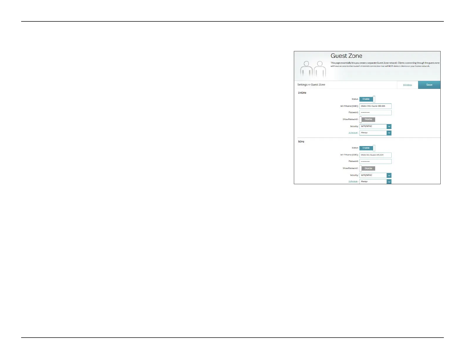 network. You may congure dierent zones for the 2.4 GHz and 5 GHz wireless