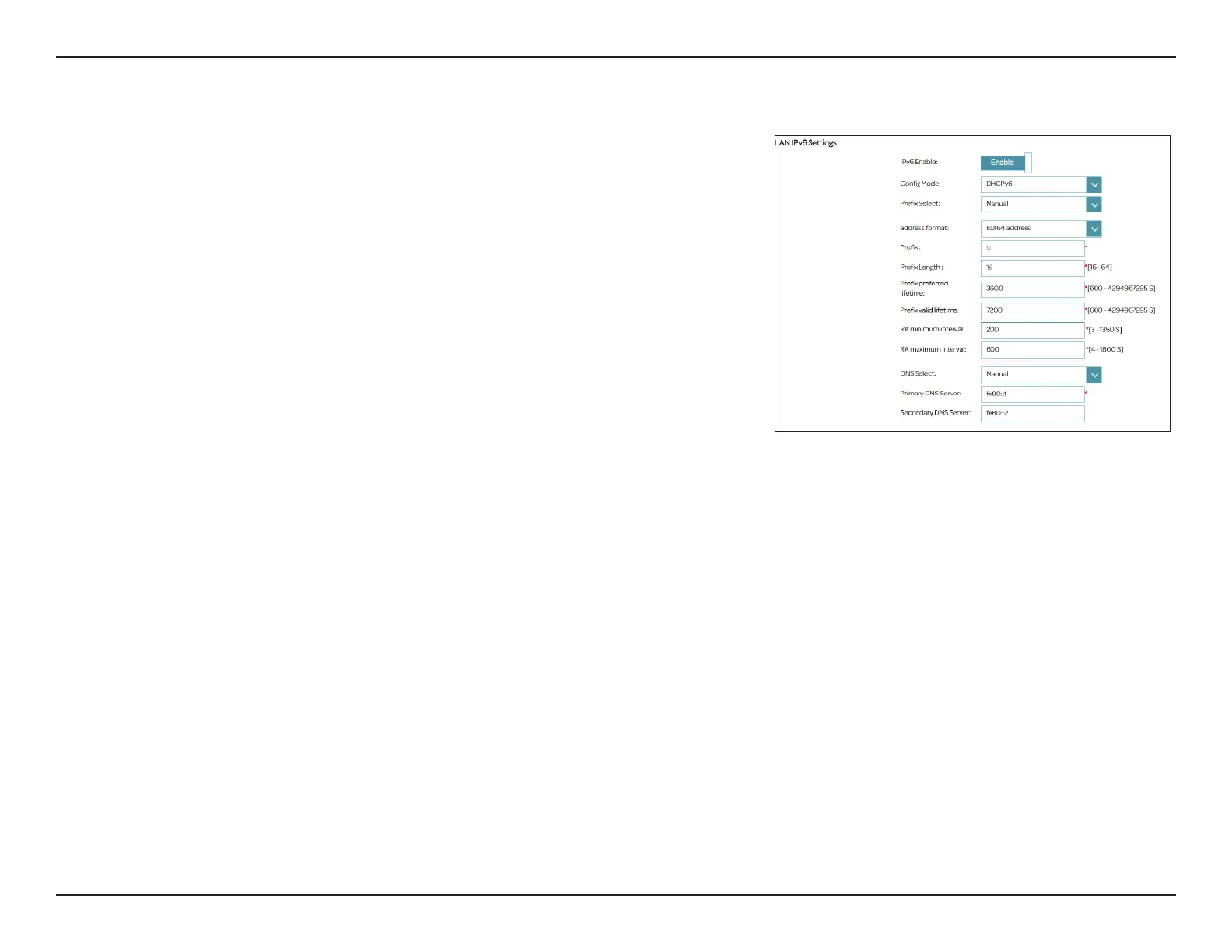 Enter the valid lifetime of the prex (600-4294967295 seconds). The